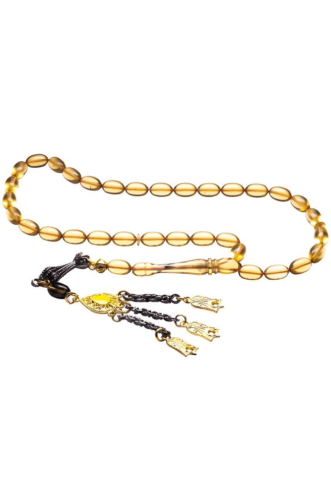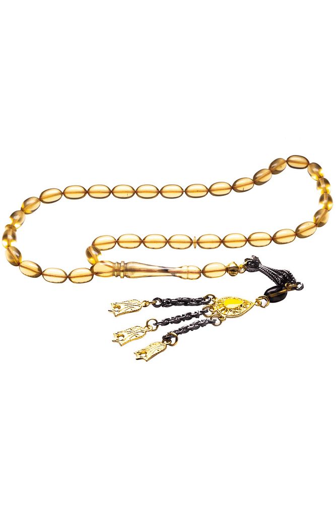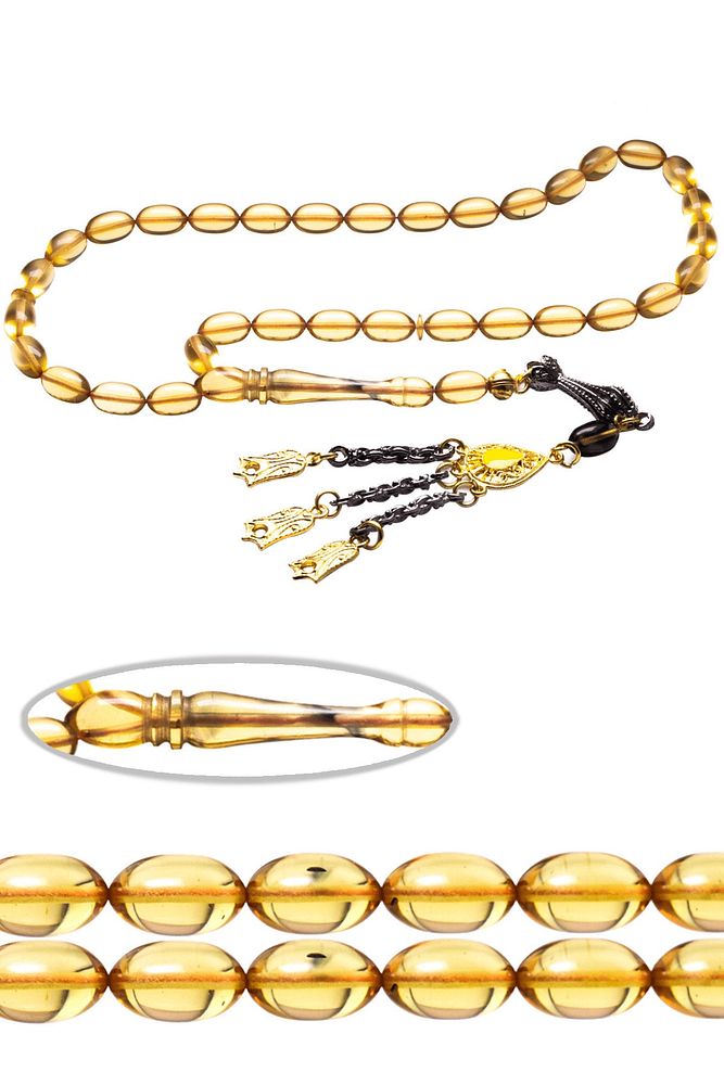 Ürün ya da Doğal Taş Açıklaması; ; (Ağrı Kesici, Sinir Stres ve Bereket Taşı); ; Ateş kehribar tesbih modelleri, ''Tesbih Atölyesi'' Atölyelerinde ustalarımız tarafından kuru torna işciliği ile elde özen ile tane tane işlenmektedir. Ürünlerimiz el işciliği olduğu için sınırlı sayıda üretilmektedir. Tasarımlarımızda kullandığımız reçineler Dünya'nın en kaliteli reçineleridir. Kısa bir süre içerisinde renk alır ve koku verir. Ürünleriniz orijinallik ve garanti belgesi ile gönderilir. Tasarımlarımıza üç kat cila atılmıştır. Muhteşem bir çekime sahip koleksiyonluk ve günlük çekim için ideal ürünlerdir.; ; Bu tasarımda; Bal Sarısı Renkli Şeffaf özel renkli ultra şeffaf orijinal renk alan ve koku veren kaliteli ateş kehribar reçine kullanılmıştır. Her kehribar tanesi birbirinin aynısı olmadığı için küçükte olsa farklılıklar gösterebilir.; ; Üretildiği Malzeme; Ateş Kehribar; Ana Renk; Bal Sarısı Şeffaf Renk; Ağırlık; 20-30 gr; Tane Şekli; 7x11 mm; Tane Ölçüsü; Beyzi Kesim; Toplam Uzunluk; 20-30 cm; İmame ve Püskül Maddesi; Düşük Ayar Gümüş;