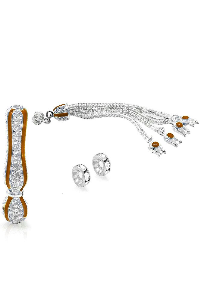 Beyaz Altın Kaplama Bakır Renk Mineli Telkari Imame Püskül Set