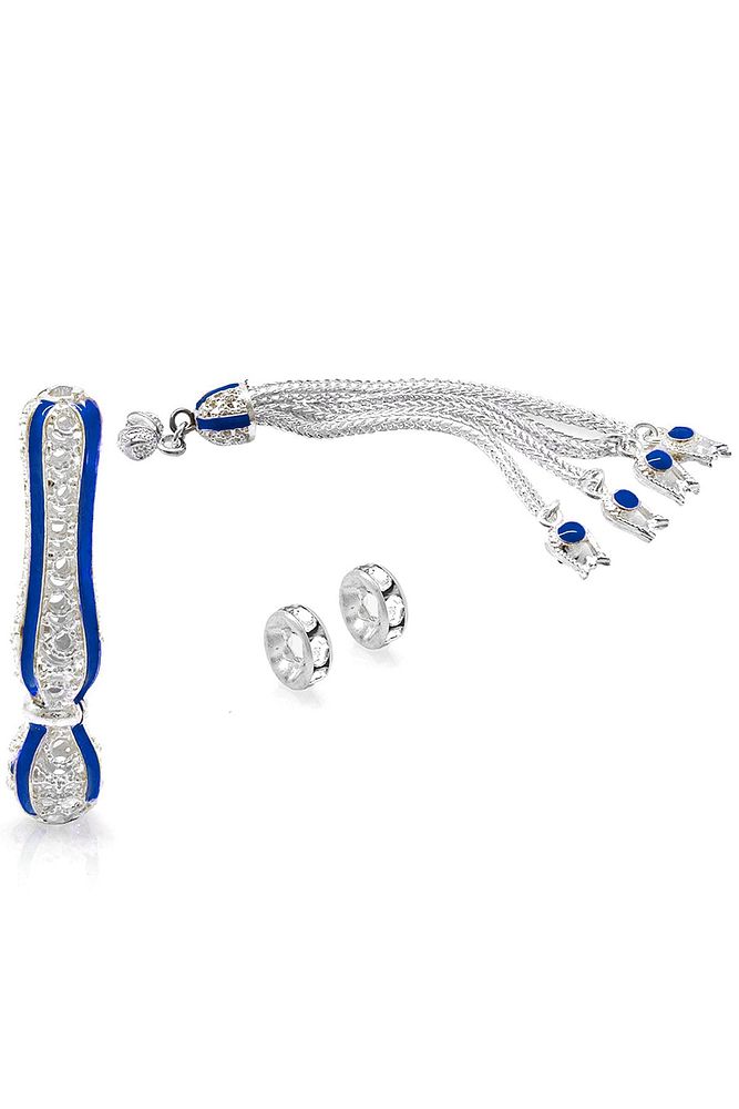 Beyaz Altın Kaplama Parlement Mavi Mineli Telkari Imame Püskül Set