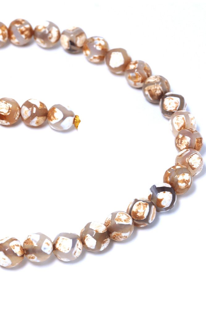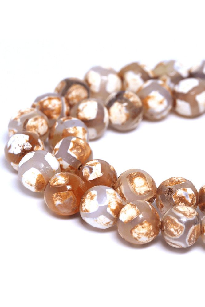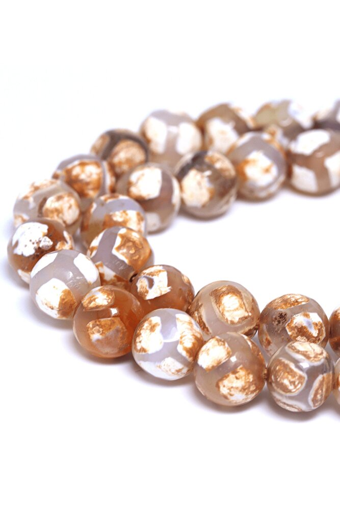 Beyaz Çizgili Doğal Tibet Akik Taşı Dizi