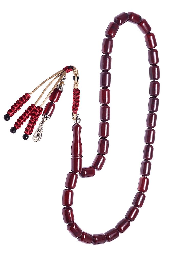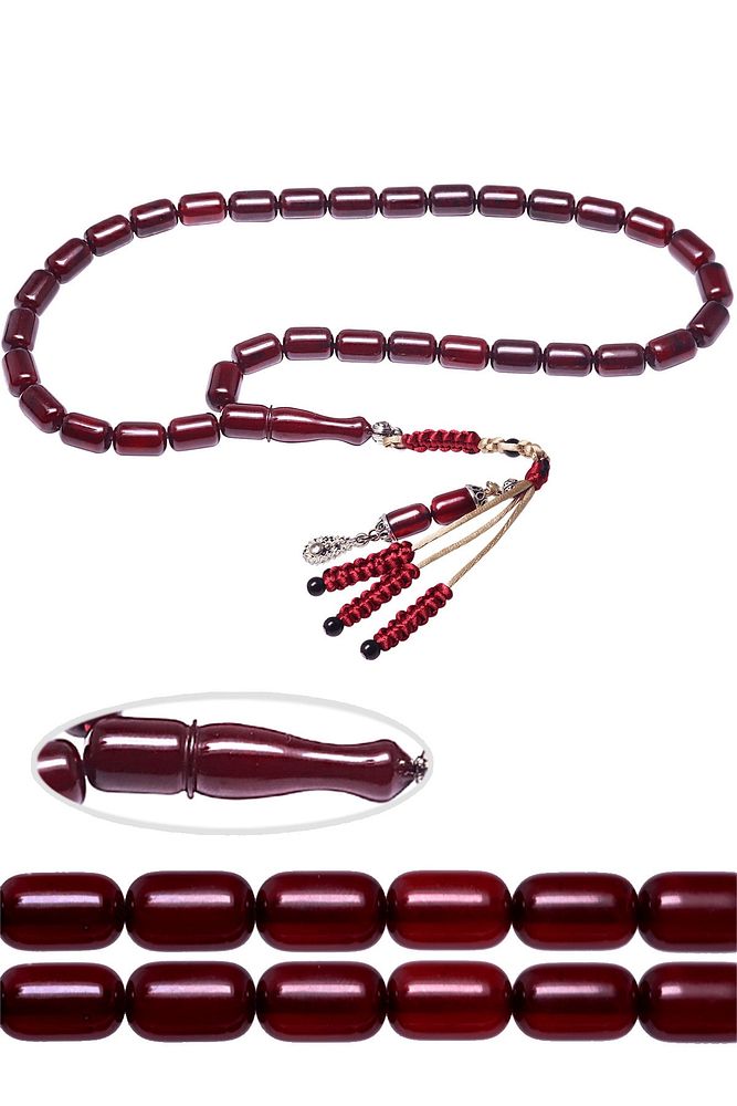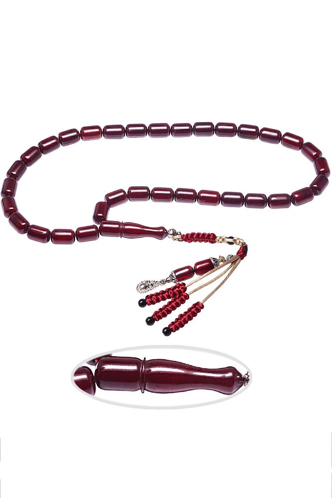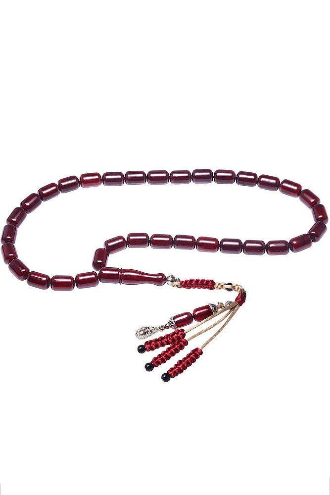 Bordo Renkli Makrome Püsküllü Kapsül Kesim Sıkma Kehribar Tesbih