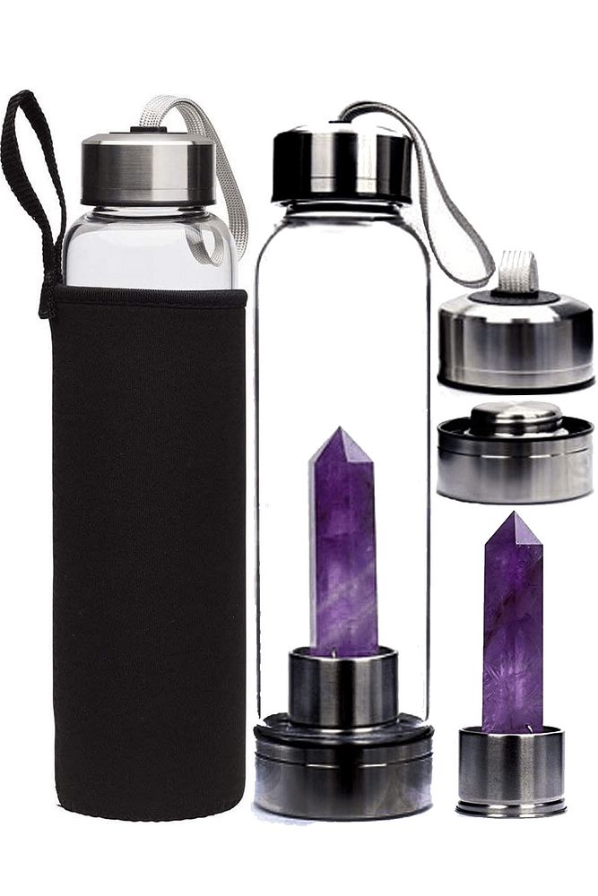 Bu doğal taş su şişesi modelimizde; Dünya'nın en kaliteli %100 orijinal Ametist Taşı kullanılmıştır. Mataramızın içerisindeki %100 Orijinal ve gerçek taştır. inizi stresinizi alacak, mineral açısından oldukça zengin olduğu için bulunduğu ortamdaki negatif enerjileri alacak ve pozitif enerjiler verecektir.