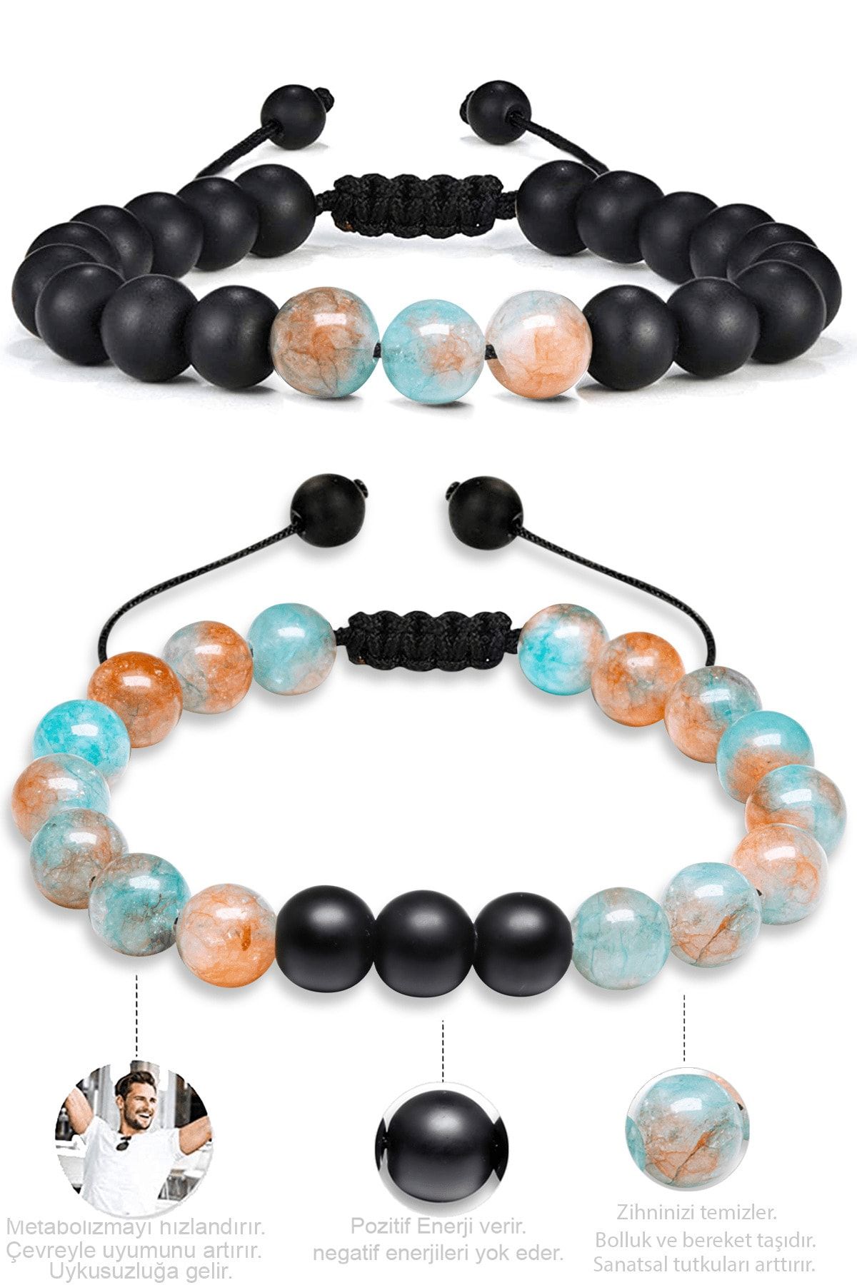 Ürün ya da Doğal Taş Açıklaması (Pembe Renk Kuvars Taşı ve Oniks Taşı Doğal Taş Bileklik 2'Li Set)