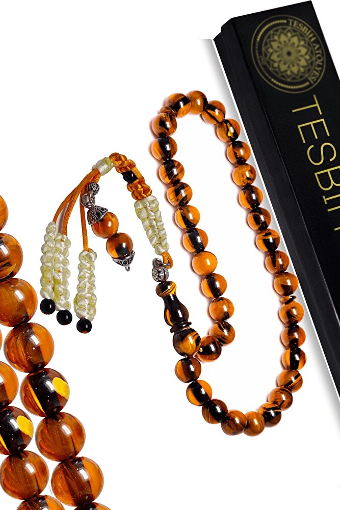 Ürün ya da Doğal Taş Açıklaması (Baş Ağrısı Sinir ve Stres) Tesbih Atölyesi, Sıkma kehribar tesbih, tasarımları özel olarak usta ellerde tasarlanır. Tasarımlarımız el yapımı olup sınırlı adette üretilmektedir. Tasarımlarda kullanılan püsküller düşük ayar gümüşten imal edilir. Tasarımlarda kullanılan kehribar taneleri hareli özel kalıplardan yapılır. Yapay reçine ile üretilmektedir. Ürünlerimiz renk almakta ve koku vermektedirler. Bu tasarımda; Kahverengi ve koyu sarı renkli yoğun hareli renk alan kaliteli sıkma kehribar reçine kullanılmıştır. Her kehribar tanesi birbirinin aynısı olmadığı için küçükte olsa farklılıklar gösterebilir. Üretildiği Malzeme; Sıkma Kehribar; Ana Renk; Kahverengi ve Turuncu Renk; Ağırlık; 20-30 gr; Tane Şekli; 8x9 mm; Tane Ölçüsü; Küre Kesim; Toplam Uzunluk; 20-30 cm; İmame ve Püskül Maddesi; Makrome;