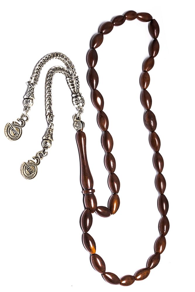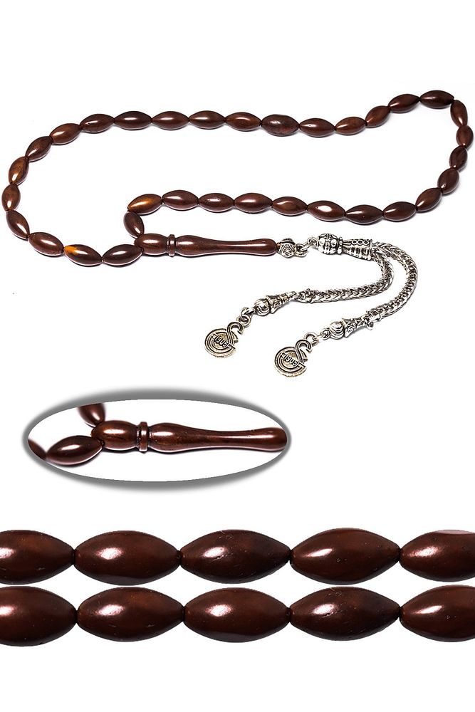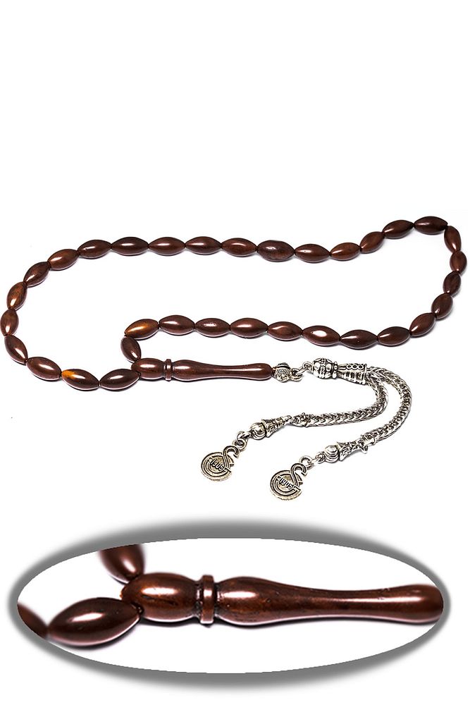 Ürün ya da Doğal Taş Açıklaması; ; (Doğal Antibakteriyel Temizleyici - Çektikçe Parlayan ve Kararır); ; Kuka tesbih modelleri, ''Tesbih Atölyesi'' Atölyelerinde ustalarımız tarafından kuru torna işciliği ile elde özen ile tane tane işlenmektedir. Ürünlerimiz el işciliği olduğu için sınırlı sayıda üretilmektedir. Tasarımlarımızda kullandığımız Kuka meyvesidir. Üzerine üç kat el cilası atılmıştır. Osmanlıda hekimler tarafından kullanılır eldeki bakterileri temizler. ; ''Bu tasarımda; Sistemli kahverengi arpa kesim olarak tasarlanmıştır. Kuka Meyvesi kullanılmıştır.'' Zaman içerisinde kullanımda renk alır ve çektikçe kararır. Bakımını badem yağı ve ceviz yağı ile yapabilirsiniz. ; Üretildiği Ağaç; Kuka Ağacı; İşlemesi; Sade; Ağırlık; 10.5gr; Tane Şekli; 5.5x10 mm; Tane Ölçüsü; Arpa Kesim; Toplam Uzunluk; 20-25 cm; İmame ve Püskül Maddesi; Düşük Ayar Gümüş;