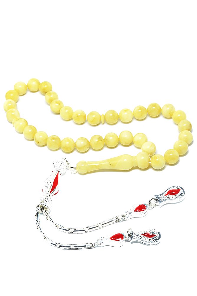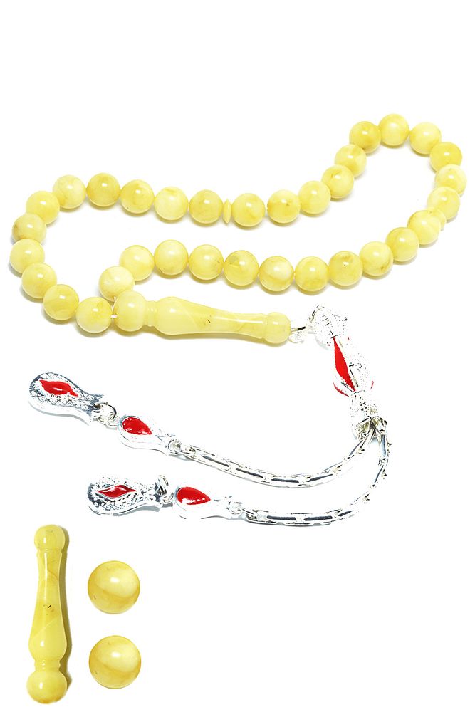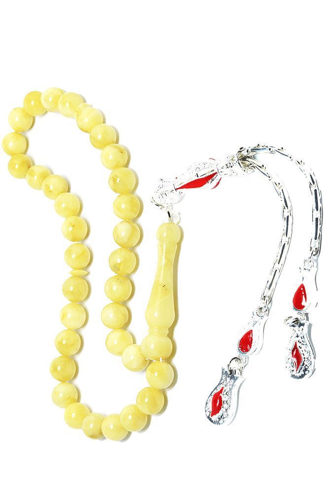 Gümüş Püsküllü Her Tanesi El Işcilik Iri Boy Garantili Damla Kehribar Tesbih