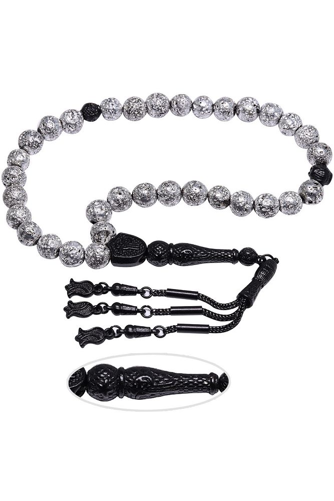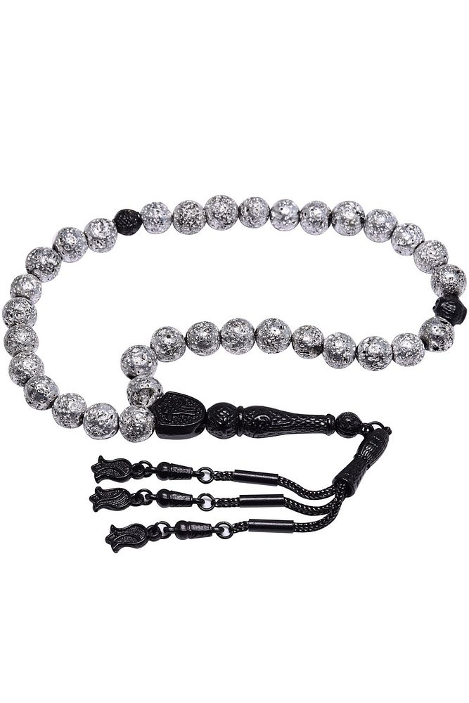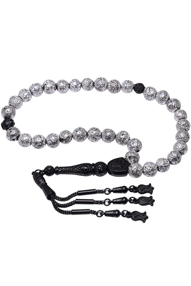 Gümüş Renkli Küre Kesim Lav Taşı Tesbih