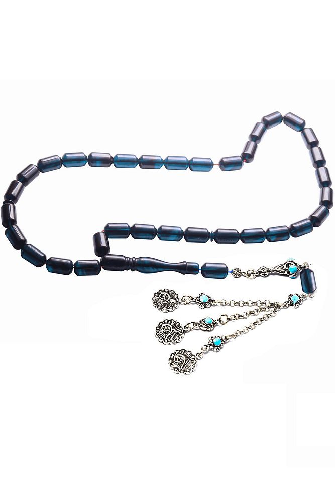 Halep Püsküllü Kapsül Kesim Dışı Siyah Içi Mavi Ateş Kehribar Tesbih