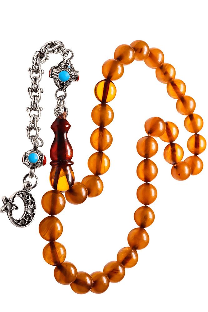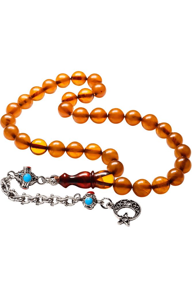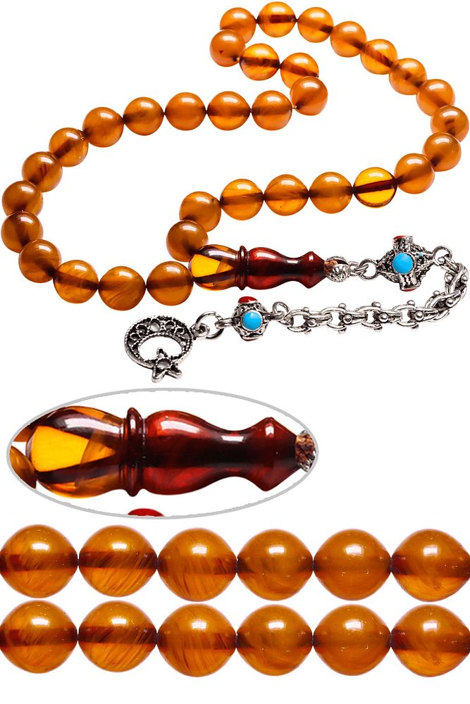 Halep Püsküllü Küre Kesim Kayısı Renk Sıkma Kehribar Tesbih