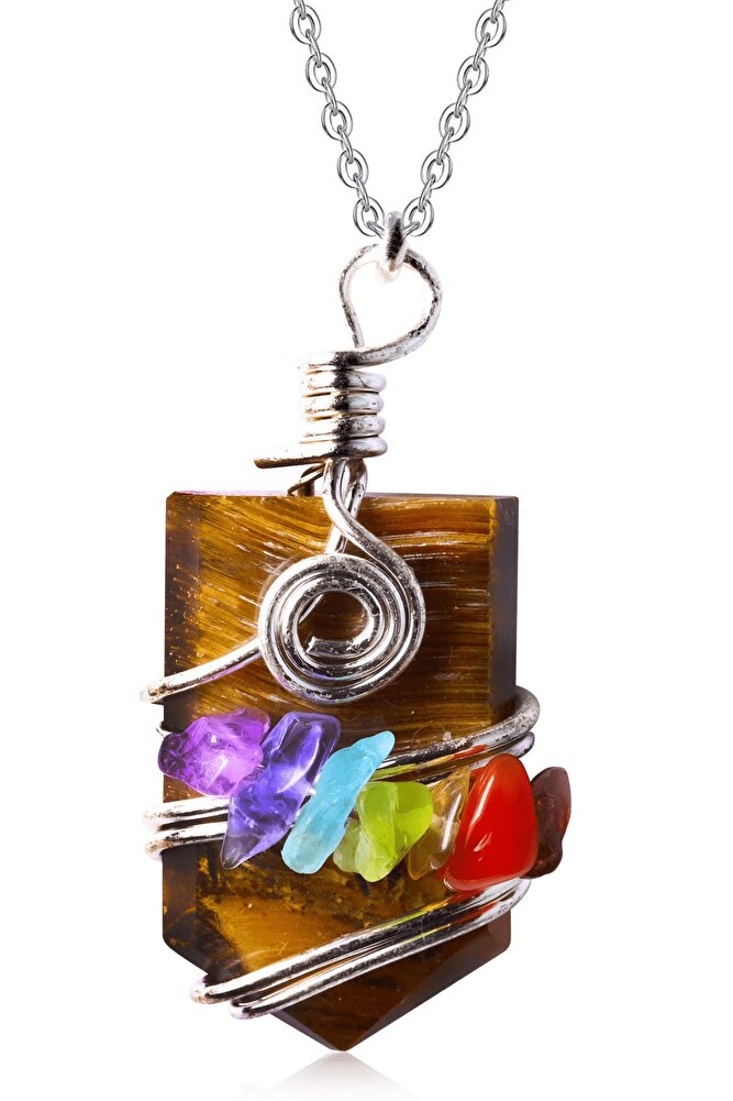 Kaplan Gözü Taşı 7 Çakra Doğal Taş Kolye