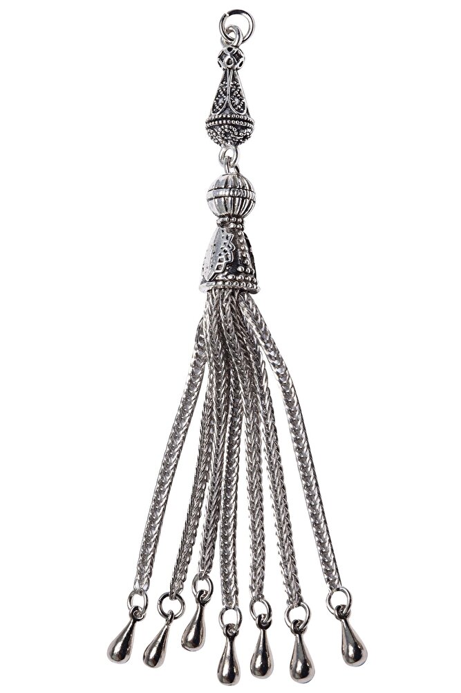 Kararmaz 7'li Düşük Ayar Gümüş Çoklu Sallamalı Tesbih Püskülü