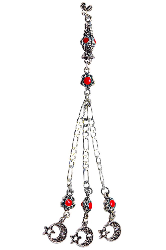 Tesbih Püskülü, modelleri, ''Tesbih Atölyesi'' Atölyelerinde ustalarımız tarafından 800 ayar gümüşten oluşmaktadır. Üzerine atılan çift katman rodaj sistemi ile renk atmaz ve matlaşmaz bir yapıya sahiptir. Tesbihlerinizi dilediğiniz gibi tasarlayabilmeniz için özel olarak hazırlandı. Ürünlerimiz el işciliği olduğu için sınırlı sayıda üretilmiştir.; Bu tasarımda; Kararmaz Kırmızı Mineli Düşük Ayar Gümüş Halep kullanılmıştır. Renk atmaz ve matlaşmaz bir yapıya sahiptir.; Üretildiği Alaşım; Düşük Ayar Gümüş; Ana Renk; Gümüş ; Ağırlık; 10-20 gr; Zincir; Figaro Zincir; Renk Atar Mı?; Renk Atmaz;