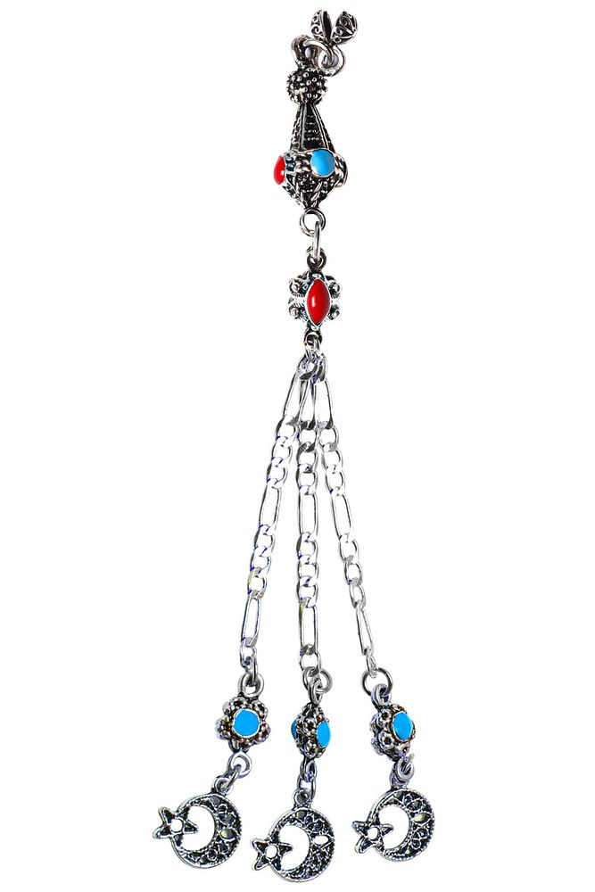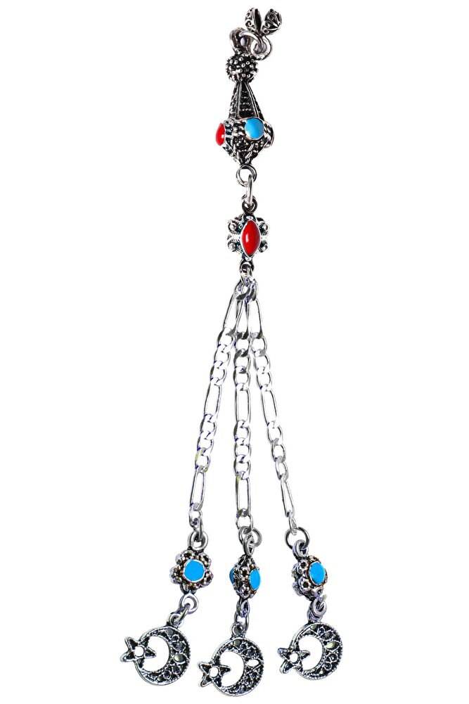 Ürün ya da Doğal Taş Açıklaması; ; Tesbih Püskülü, modelleri, \'\'Tesbih Atölyesi\'\' Atölyelerinde ustalarımız tarafından 800 ayar gümüşten oluşmaktadır. Üzerine atılan çift katman rodaj sistemi ile renk atmaz ve matlaşmaz bir yapıya sahiptir. Tesbihlerinizi dilediğiniz gibi tasarlayabilmeniz için özel olarak hazırlandı. Ürünlerimiz el işciliği olduğu için sınırlı sayıda üretilmiştir.; ; Bu tasarımda; Kararmaz Mercan Firuze Mineli Düşük Ayar Gümüş Halep kullanılmıştır. Renk atmaz ve matlaşmaz bir yapıya sahiptir.; ; Üretildiği Alaşım; Düşük Ayar Gümüş; Ana Renk; Gümüş ; Ağırlık; 10-20 gr; Zincir; Oluklu Figaro Zincir; Renk Atar Mı?; Renk Atmaz;