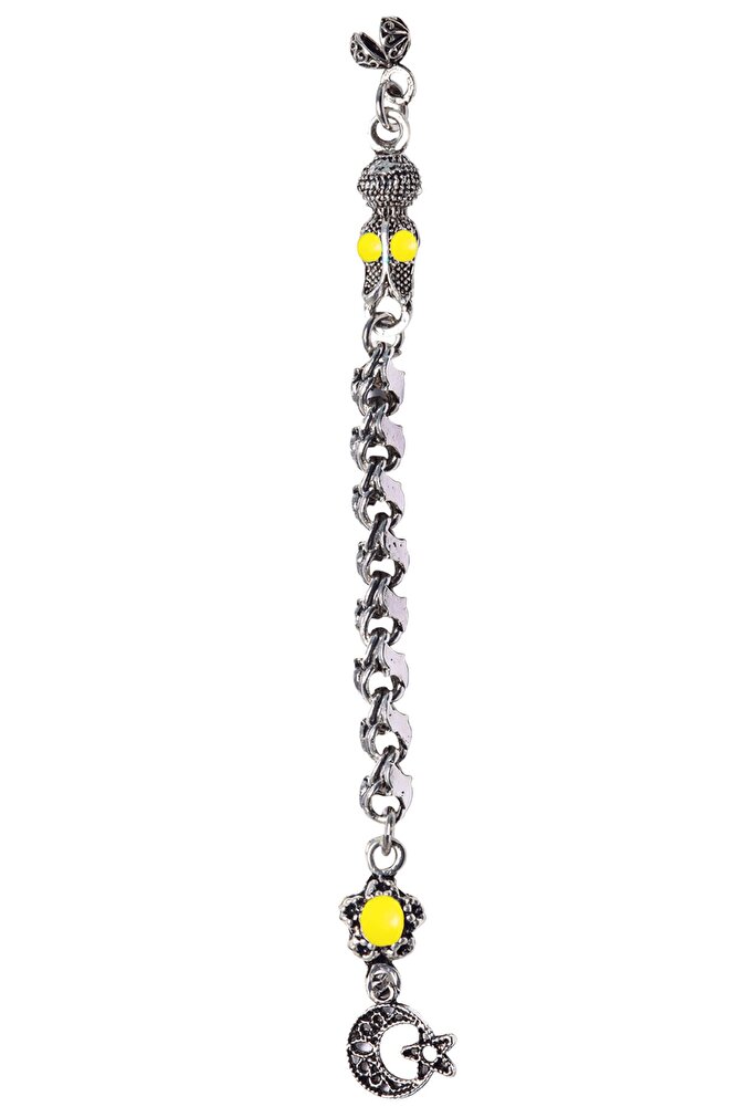 Tesbih Püskülü, modelleri, ''Tesbih Atölyesi'' Atölyelerinde ustalarımız tarafından 800 ayar gümüşten oluşmaktadır. Üzerine atılan çift katman rodaj sistemi ile renk atmaz ve matlaşmaz bir yapıya sahiptir. Tesbihlerinizi dilediğiniz gibi tasarlayabilmeniz için özel olarak hazırlandı. Ürünlerimiz el işciliği olduğu için sınırlı sayıda üretilmiştir.; ; Bu tasarımda; Kararmaz Sarı Mineli Düşük Ayar Gümüş Pullu Zincir kullanılmıştır. Renk atmaz ve matlaşmaz bir yapıya sahiptir.; ; Üretildiği Alaşım; Düşük Ayar Gümüş; Ana Renk; Gümüş ; Ağırlık; 10-20 gr; Zincir; Pullu Zincir; Renk Atar Mı?; Renk Atmaz;
