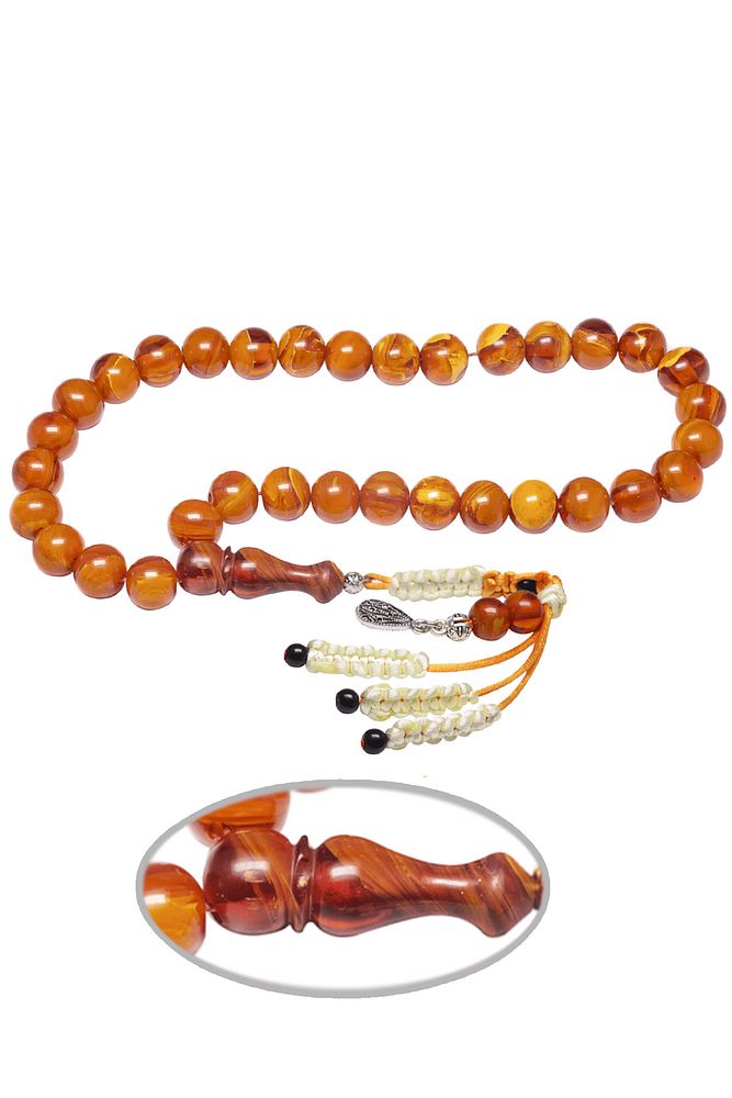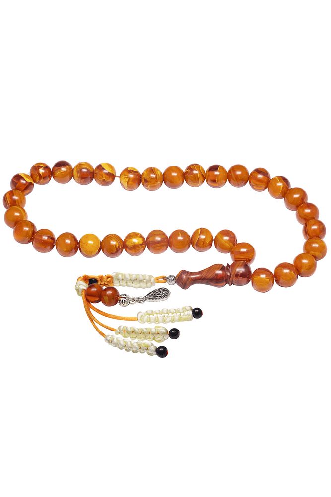 Kayısı Renkli Makrome Püsküllü Hareli Sıkma Kehribar Tesbih