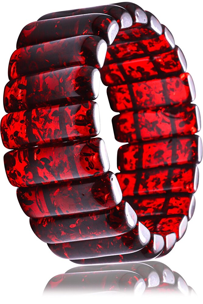 Kırmızı Renk Fosilli Unisex Rolex Beyrut Damla Kehribar Bileklik