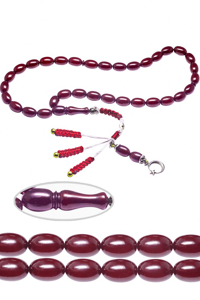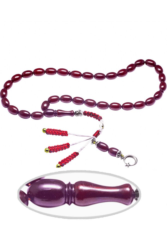 Bu tasarımda; Kırmızı renkli özel osmanlı benzetmesi renk alan kaliteli çubuk sıkma kehribar reçine kullanılmıştır.