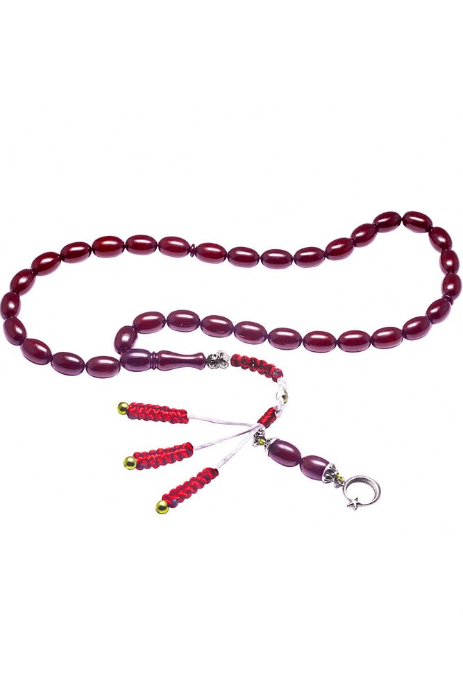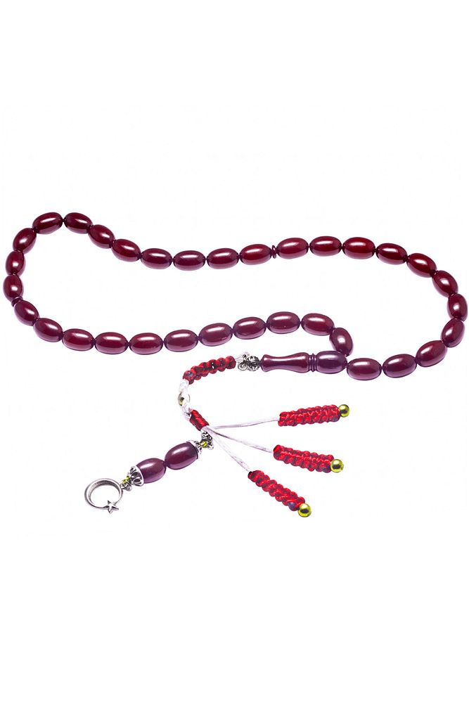 Kırmızı Renkli Beyzi Kesim Çubuk Sıkma Kehribar Tesbih