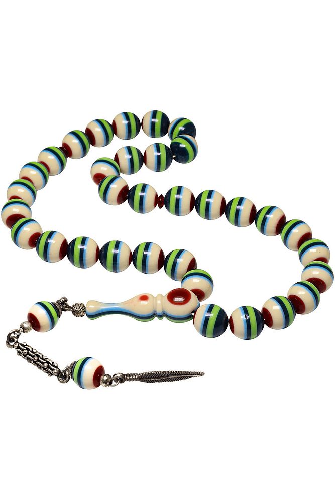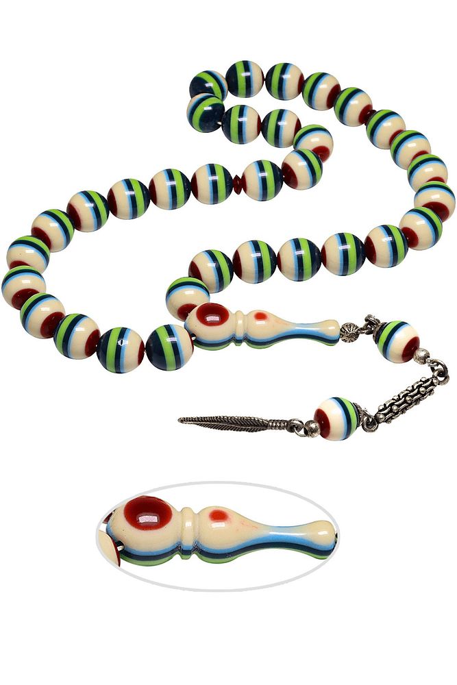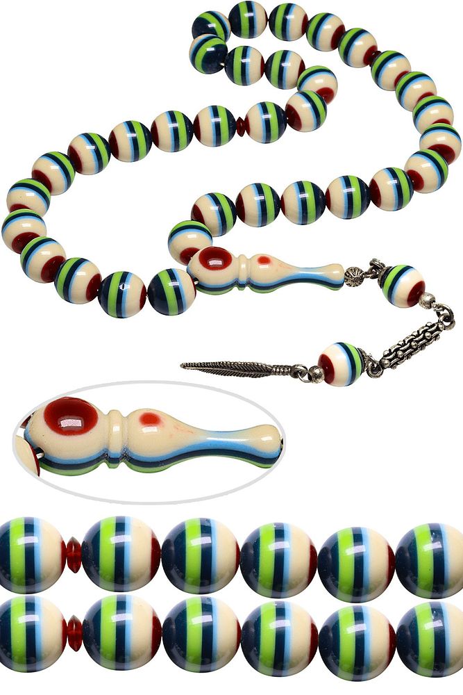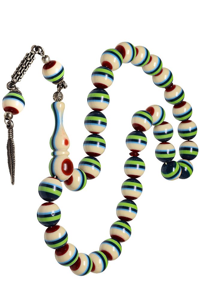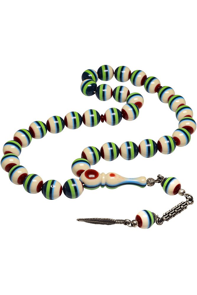 Ürün ya da Doğal Taş Açıklaması (Para - Sağlık - Pozitif Enerji Taşı) Karınca Fosilli Toz Kehribar Tesbih modelleri, ''Tesbih Atölyesi'' Atölyelerinde ustalarımız tarafından kuru torna işciliği ile elde özen ile tane tane işlenmektedir. Ürünlerimiz el işciliği olduğu için sınırlı sayıda üretilmektedir. Tasarımlarımızda kullandığımız taşlar Dünya'nın en kaliteli yapay reçinesi kullanmaktayız. Toz kehribar tesbih modellerimizin kalite olarak ateş ve sıkma kehribardan hiç bir farkı yoktur. Aradaki tek fark ateş ve sıkma kehribar tesbihin renk almasıdır. Bu tasarımda; Küre kesim Kırmızı - Beyaz - Yeşil Toz Kehribar kullanılmıştır. İmame ve Püskül yapımında; Düşük ayar gümüş kullanılmıştır. Çift kaplama rodaj atıldığı için renk atmaz ve kararmaz bir yapıya sahiptir. Üretildiği Malzeme; Kırmızı - Beyaz - Yeşil Toz Kehribar; Ana Renk; Pembe Kırmızı Sürmeli Renk; Ağırlık; 20-30 gr; Tane Şekli; 10x10 mm; Tane Ölçüsü; Küre Kesim; Toplam Uzunluk; 20-30 cm; İmame ve Püskül Maddesi; Düşük Ayar Gümüş;