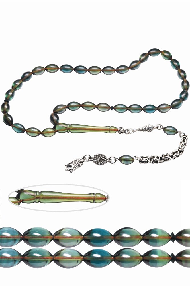 Üretildiği Malzeme ; Ateş Kehribar ; Ana Renk ; Şeffaf Mavi Renk ; Ağırlık ; 20-30 gr ; Tane Şekli ; 7x11 mm ; Tane Ölçüsü ; Beyzi Kesim ; Toplam Uzunluk ; 20-30 cm ; İmame ve Püskül Maddesi ; Düşük Ayar Gümüş ;