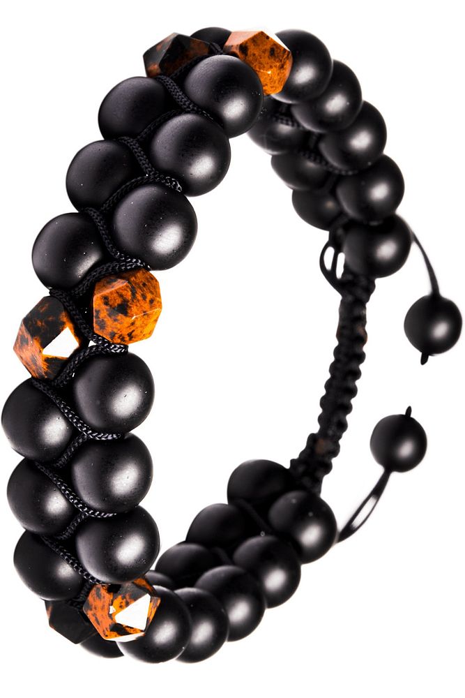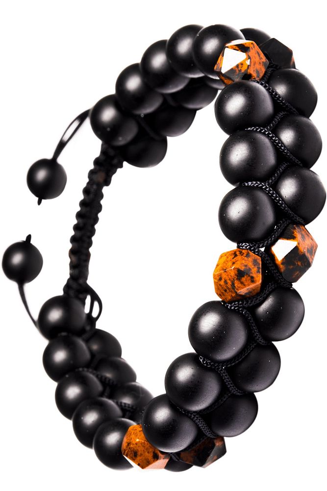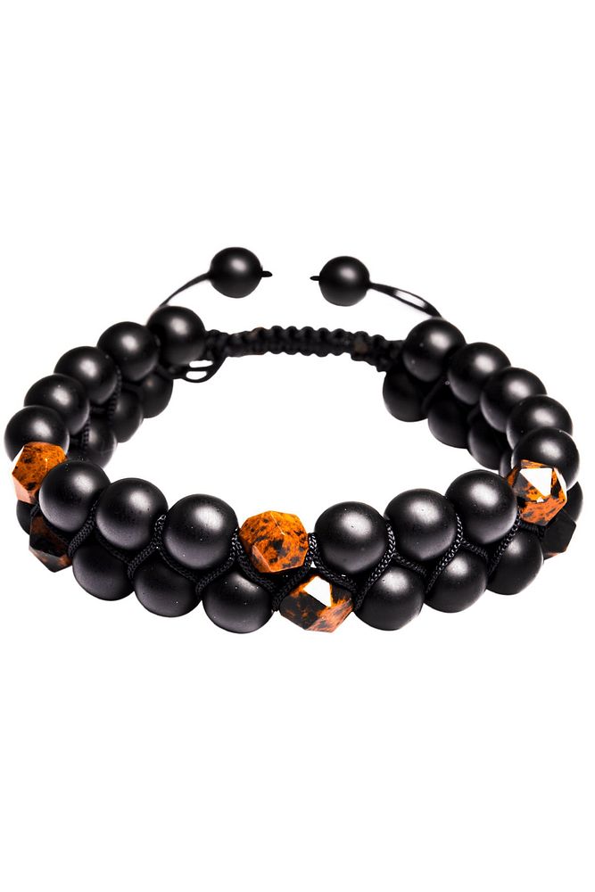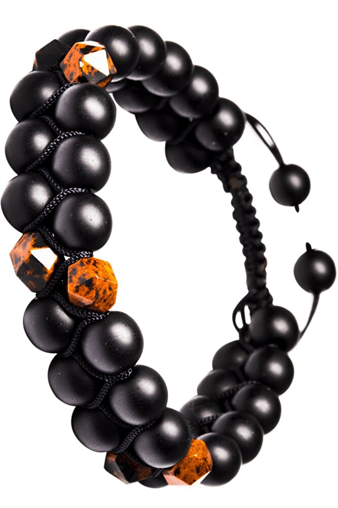Makrome Çift Sıra Oniks Taşı Ve Obsidyen Bileklik
