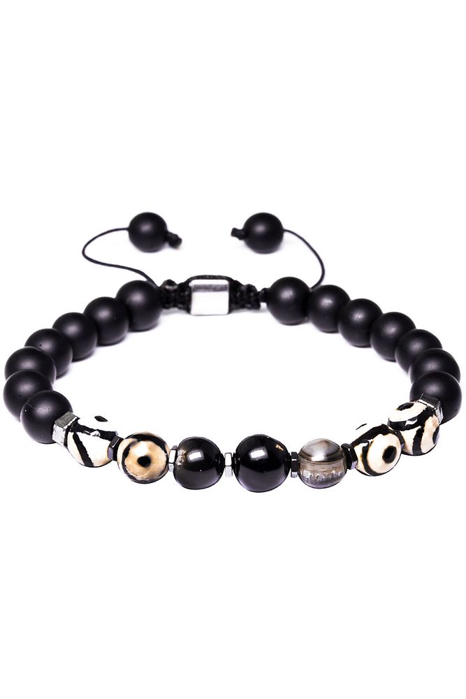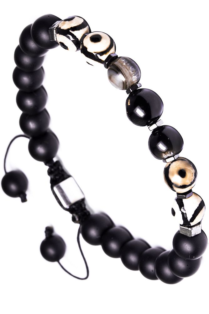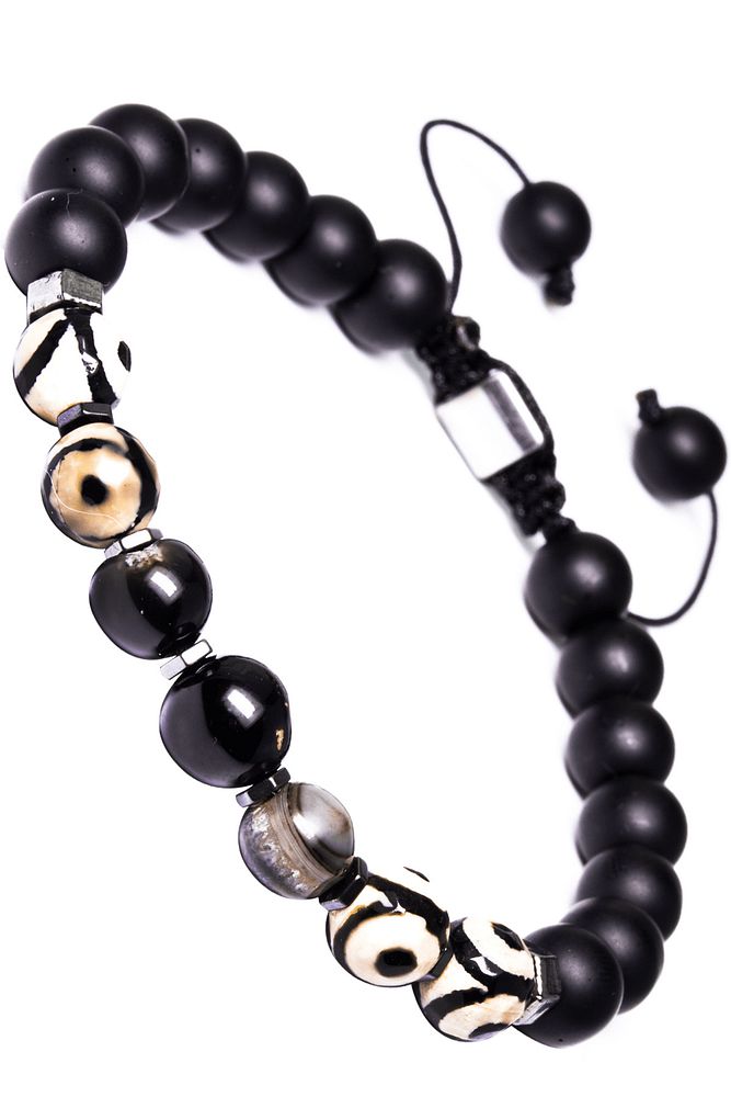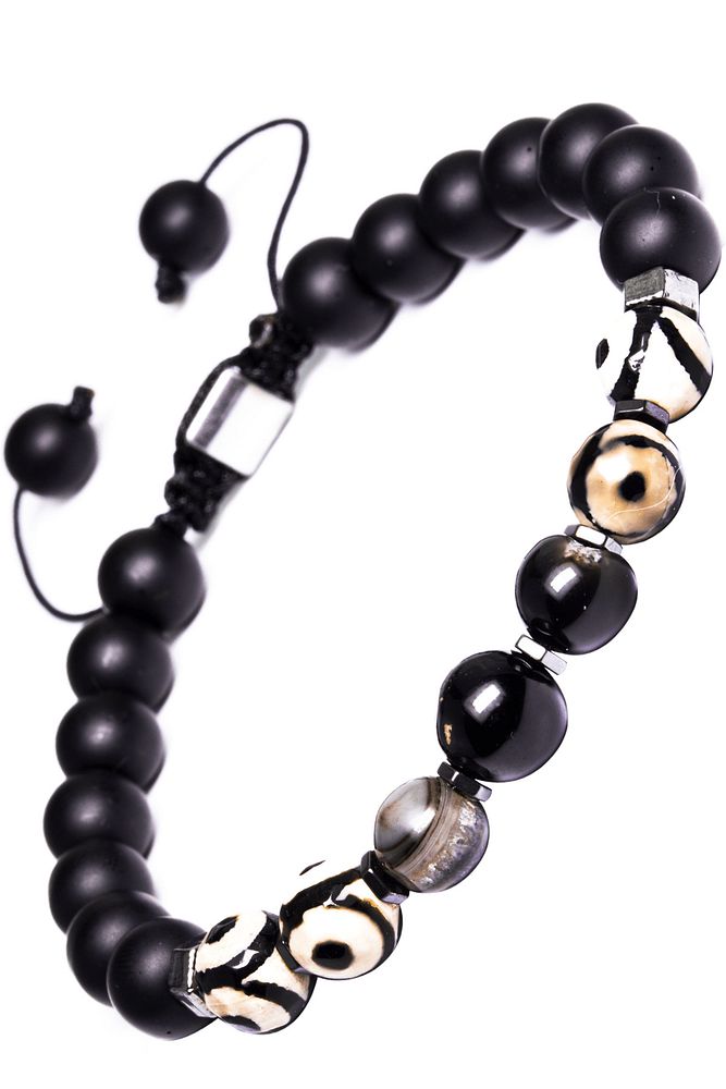 Makrome Oniks Taşı Ve Beyaz Benekli Akik Bileklik