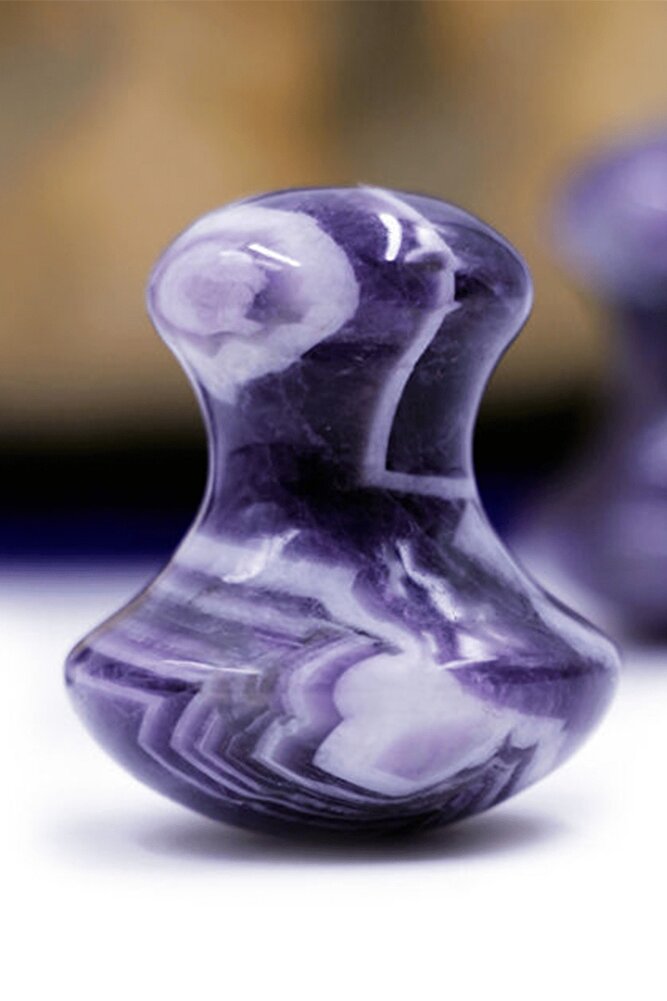 Mantar Kesim Gua Sha Ametist Taşı - Vücut Ve Yüz Cilt Masaj Taşı