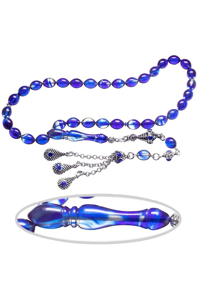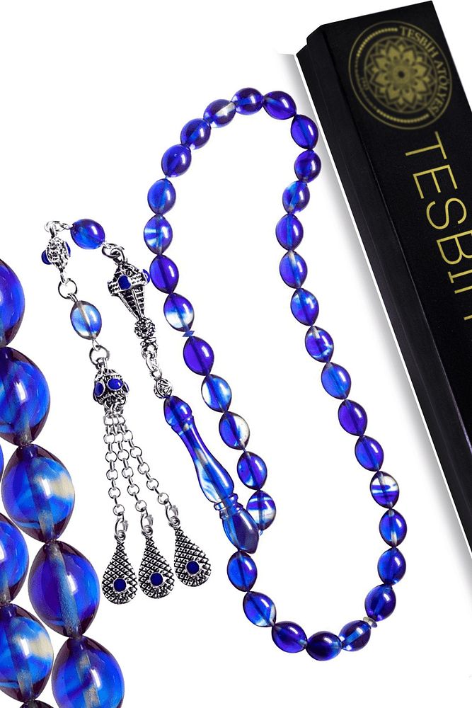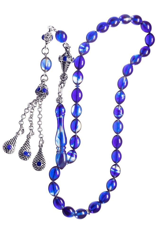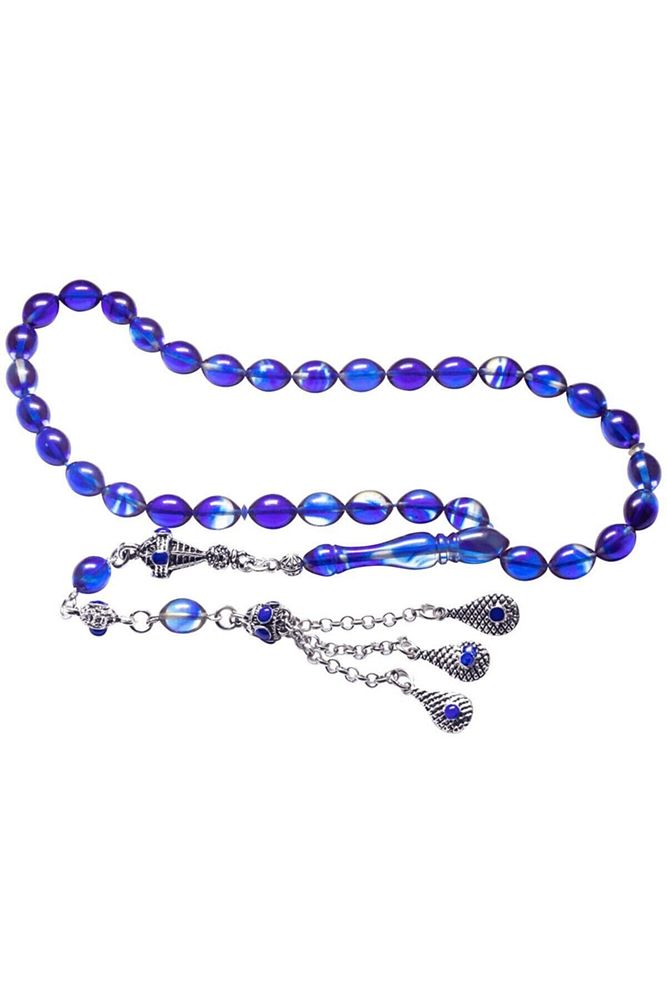 Mavi Renkli Beyzi Kesim Halep Püsküllü Ateş Kehribar Tesbih