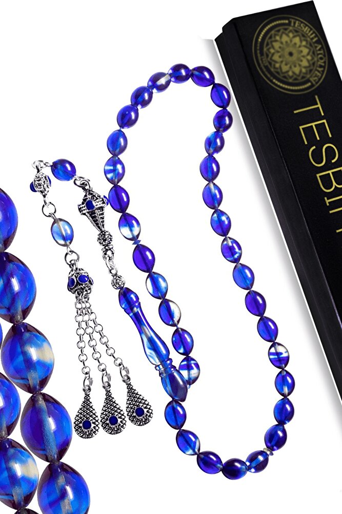 Ürün ya da Doğal Taş Açıklaması (Ağrı Kesici, Sinir Stres ve Bereket Taşı) Ateş kehribar tesbih modelleri, ''Tesbih Atölyesi'' Atölyelerinde ustalarımız tarafından kuru torna işciliği ile elde özen ile tane tane işlenmektedir. Ürünlerimiz el işciliği olduğu için sınırlı sayıda üretilmektedir. Tasarımlarımızda kullandığımız reçineler Dünya'nın en kaliteli reçineleridir. Kısa bir süre içerisinde renk alır ve koku verir. Ürünleriniz orijinallik ve garanti belgesi ile gönderilir. Tasarımlarımıza üç kat cila atılmıştır. Muhteşem bir çekime sahip koleksiyonluk ve günlük çekim için ideal ürünlerdir. Bu tasarımda; Koyu parlement mavi renkli özel 1.sınıf renk alan ve koku veren kaliteli ateş kehribar reçine kullanılmıştır. Her kehribar tanesi birbirinin aynısı olmadığı için küçükte olsa farklılıklar gösterebilir. Üretildiği Malzeme; Ateş Kehribar; Ana Renk; Koyu Mavi Renk; Ağırlık; 20-30 gr; Tane Şekli; 7.5x11.5 mm; Tane Ölçüsü; Beyzi Kesim; Toplam Uzunluk; 20-30 cm; İmame ve Püskül Maddesi; Düşük Ayar Gümüş;