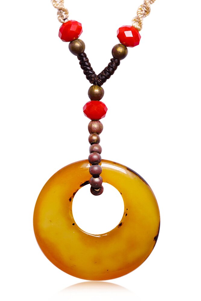 Mercan Hematit Süslemeli Turuncu Akik Doğal Taş Kolye