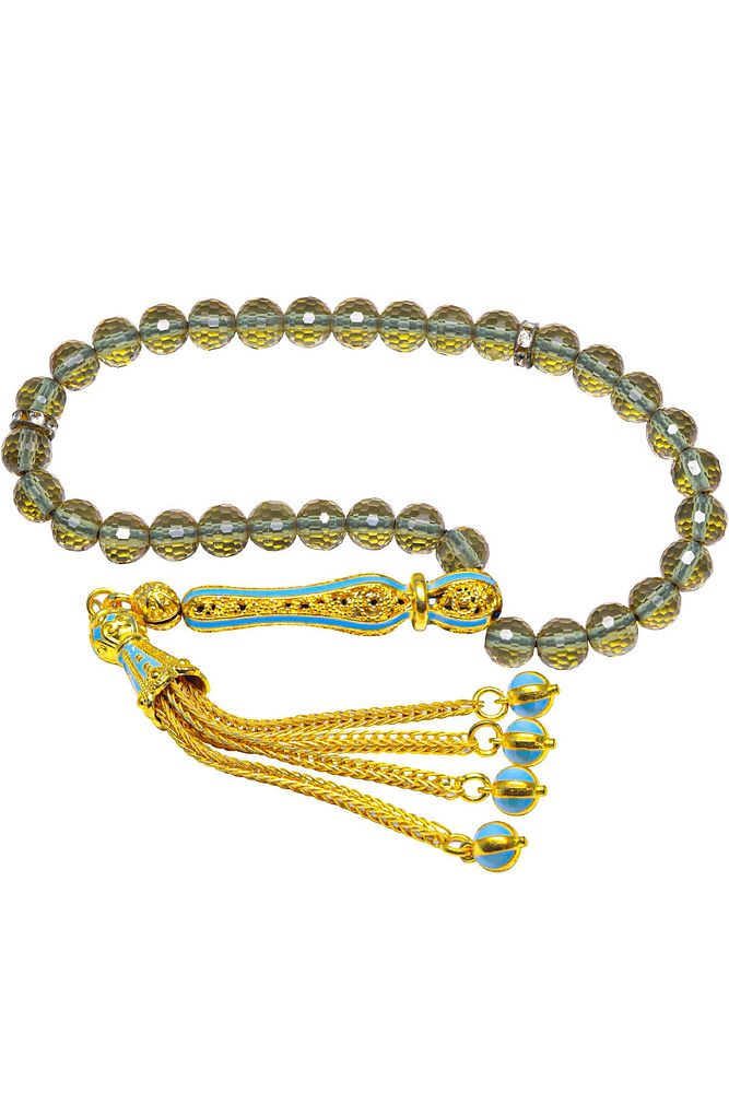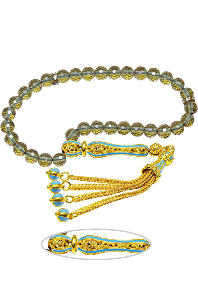 Ortam Işığına Göre 7 Renk Değiştiren Turkuaz Mineli Altın Kaplama Dört Parmak Boy Zultanit Tesbih