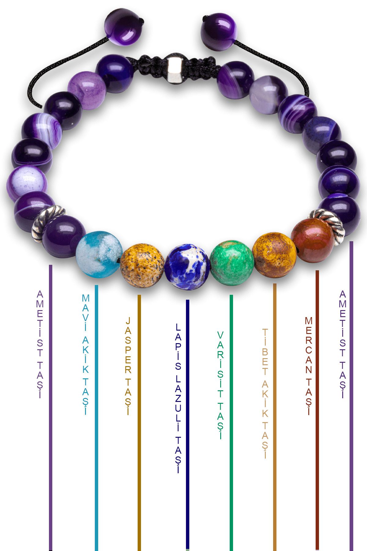 Para Mıknatısı Pozitif Enerji Sertifikalı Ametist Akik Mercan Yeşim Varisit Taşı Bileklik Doğal Mix Renk