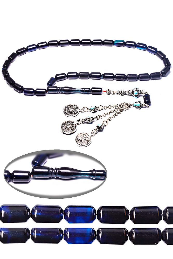 Parlement Mavisi Renkli Kapsül Kesim Ateş Kehribar Tesbih