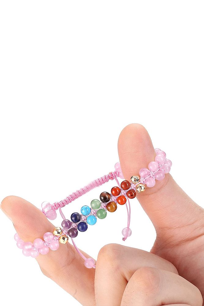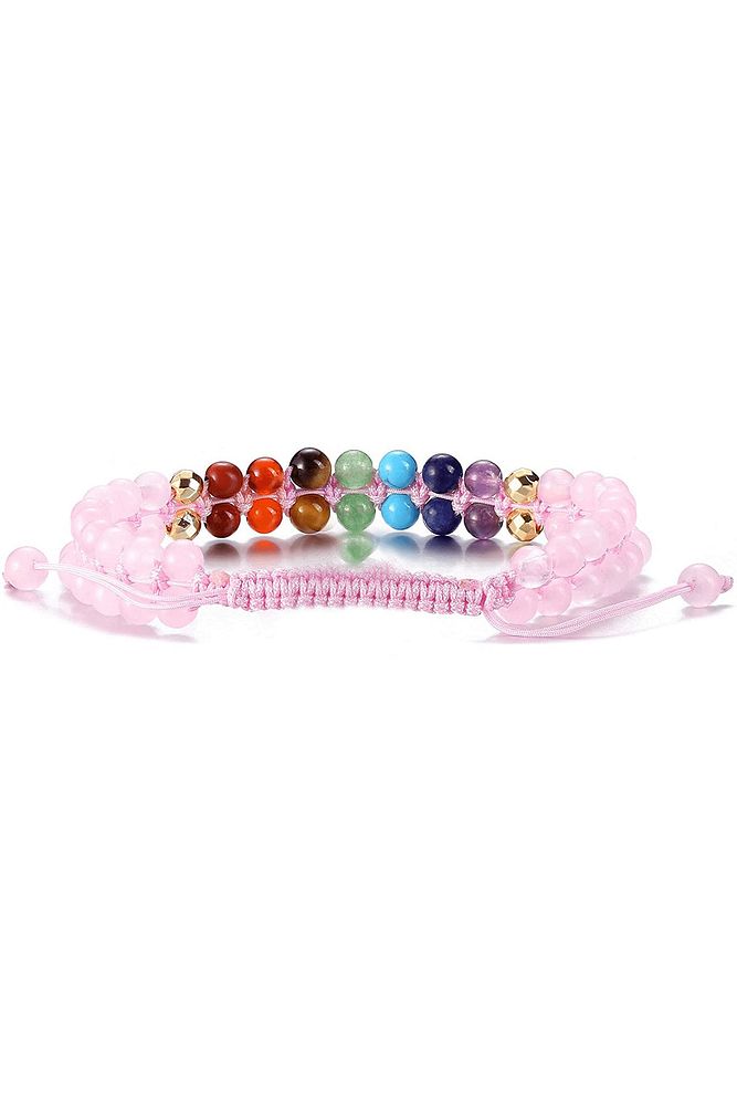 Pembe Kuvars 7 Çakra Doğal Taş Bileklik - Ametist Lapis Firuze Aventurin Kaplan Gözü Akik Jasper