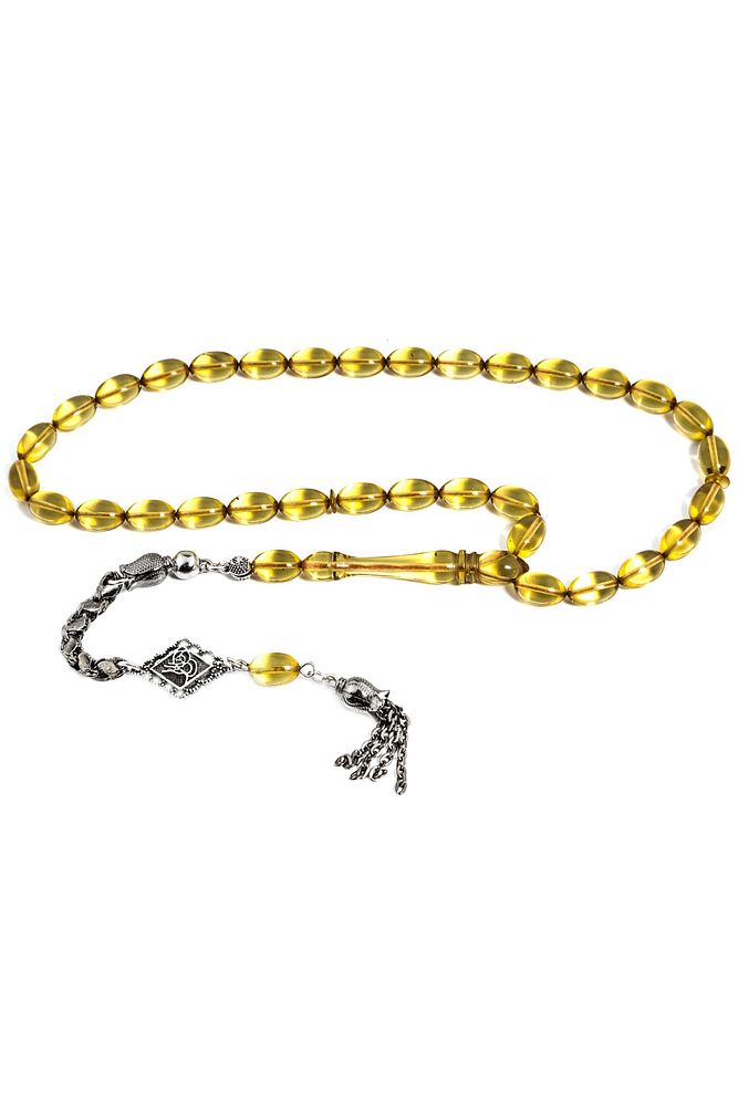 Saçaklı Püsküllü Bal Sarısı Şeffaf Renkli Ateş Kehribar Tesbih