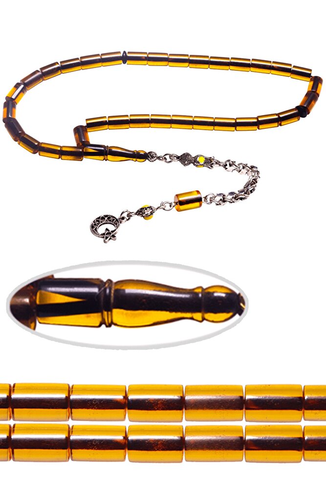 Ürün ya da Doğal Taş Açıklaması (Ağrı Kesici, Sinir Stres ve Bereket Taşı) Ateş kehribar tesbih modelleri, ''Tesbih Atölyesi'' Atölyelerinde ustalarımız tarafından kuru torna işciliği ile elde özen ile tane tane işlenmektedir. Ürünlerimiz el işciliği olduğu için sınırlı sayıda üretilmektedir. Tasarımlarımızda kullandığımız reçineler Dünya'nın en kaliteli reçineleridir. Kısa bir süre içerisinde renk alır ve koku verir. Ürünleriniz orijinallik ve garanti belgesi ile gönderilir. Tasarımlarımıza üç kat cila atılmıştır. Muhteşem bir çekime sahip koleksiyonluk ve günlük çekim için ideal ürünlerdir. Bu tasarımda; Şeffaf turkuaz renkli halkalı özel muhteşem parlak renk alan kaliteli ateş kehribar reçine kullanılmıştır. Her kehribar tanesi birbirinin aynısı olmadığı için küçükte olsa farklılıklar gösterebilir. Üretildiği Malzeme Ateş Kehribar Ana Renk Şeffaf Turkuaz Renk Ağırlık 20-30 gr Tane Şekli 7x11 mm Tane Ölçüsü Beyzi Kesim Toplam Uzunluk 20-30 cm İmame ve Püskül Maddesi Sistemli
