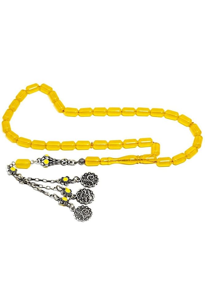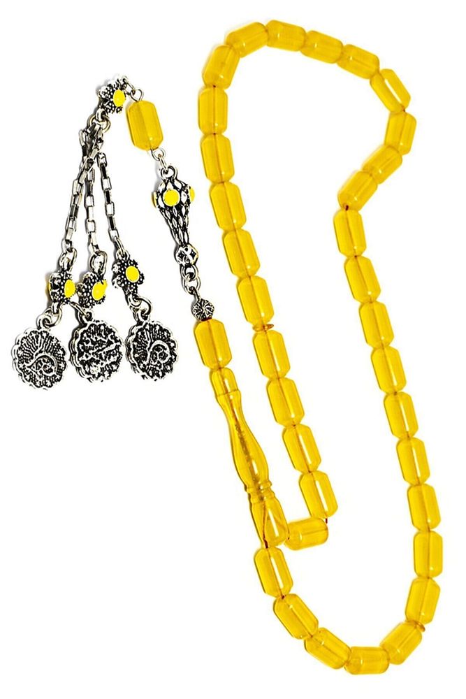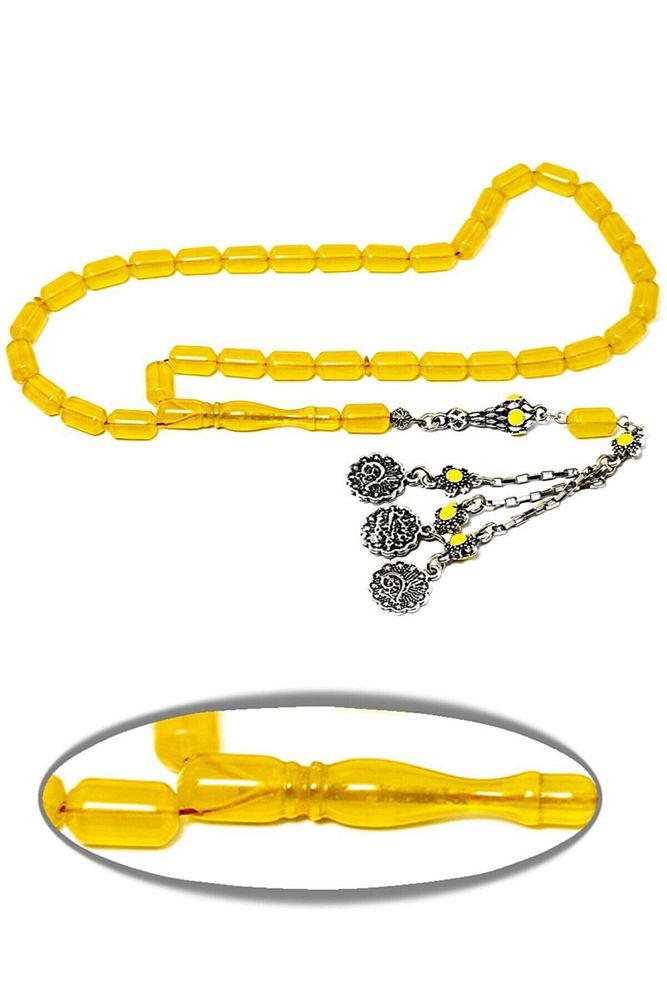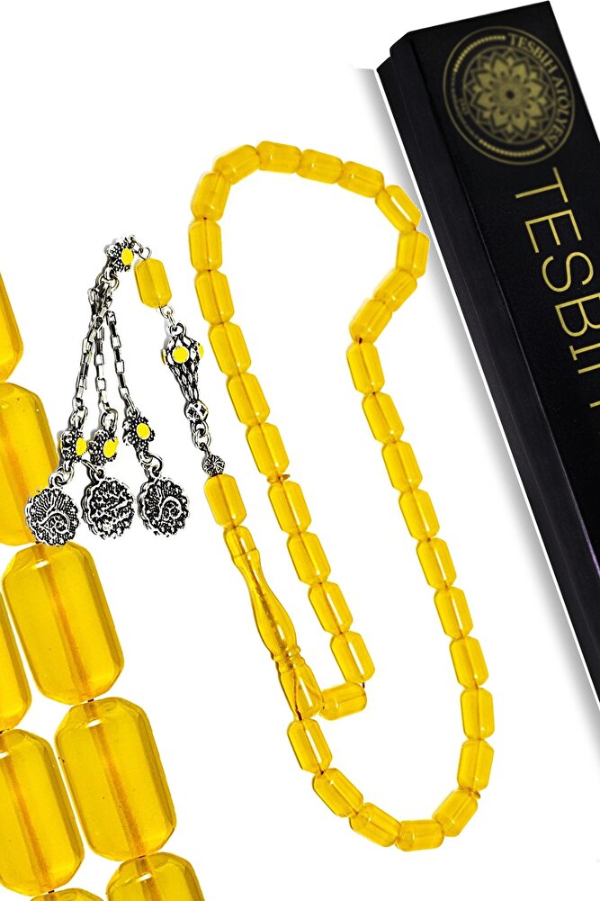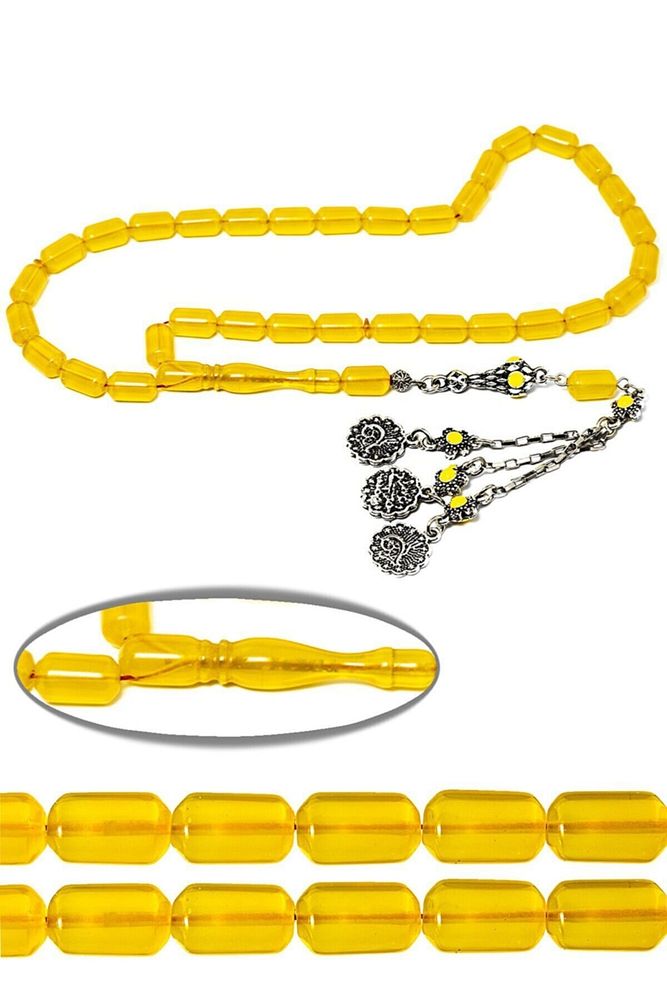 Sarı Renkli Kapsül Kesim Sarı Halep Püsküllü Zar Kehribar Tesbih