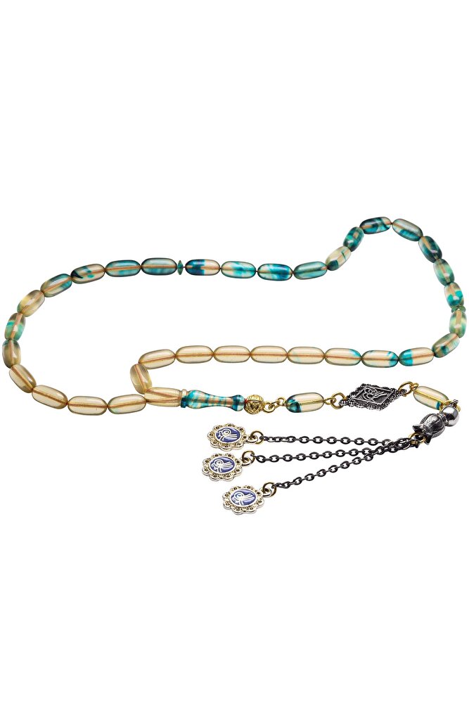 Şeffaf Turkuaz Renk Geçişli Ateş Kehribar Tesbih