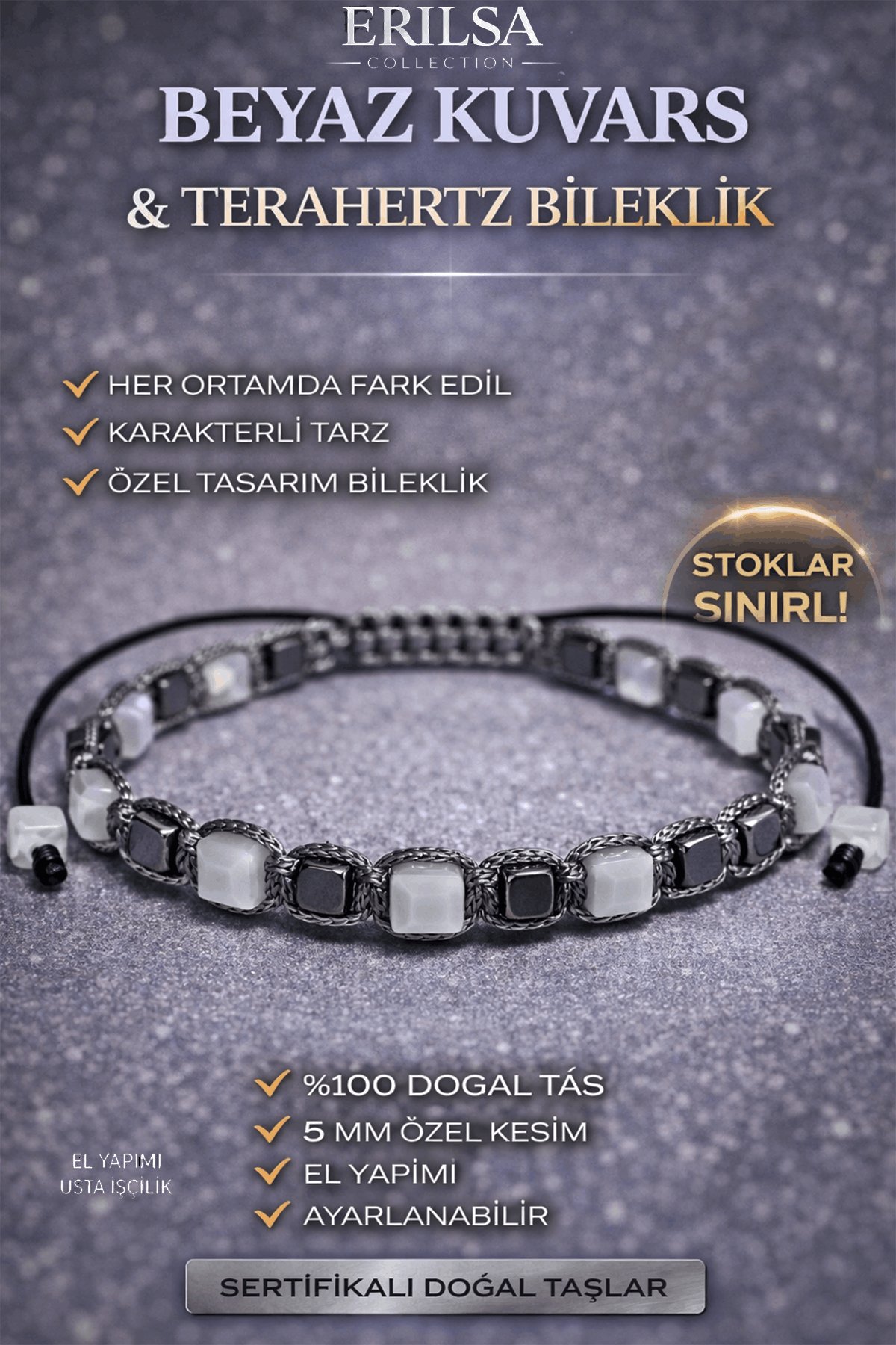 Sertifikalı Beyaz Kuvars Bileklik - 5 mm Küp Kesim Terahertz Doğal Taş Ayarlanabilir Minimal Şık