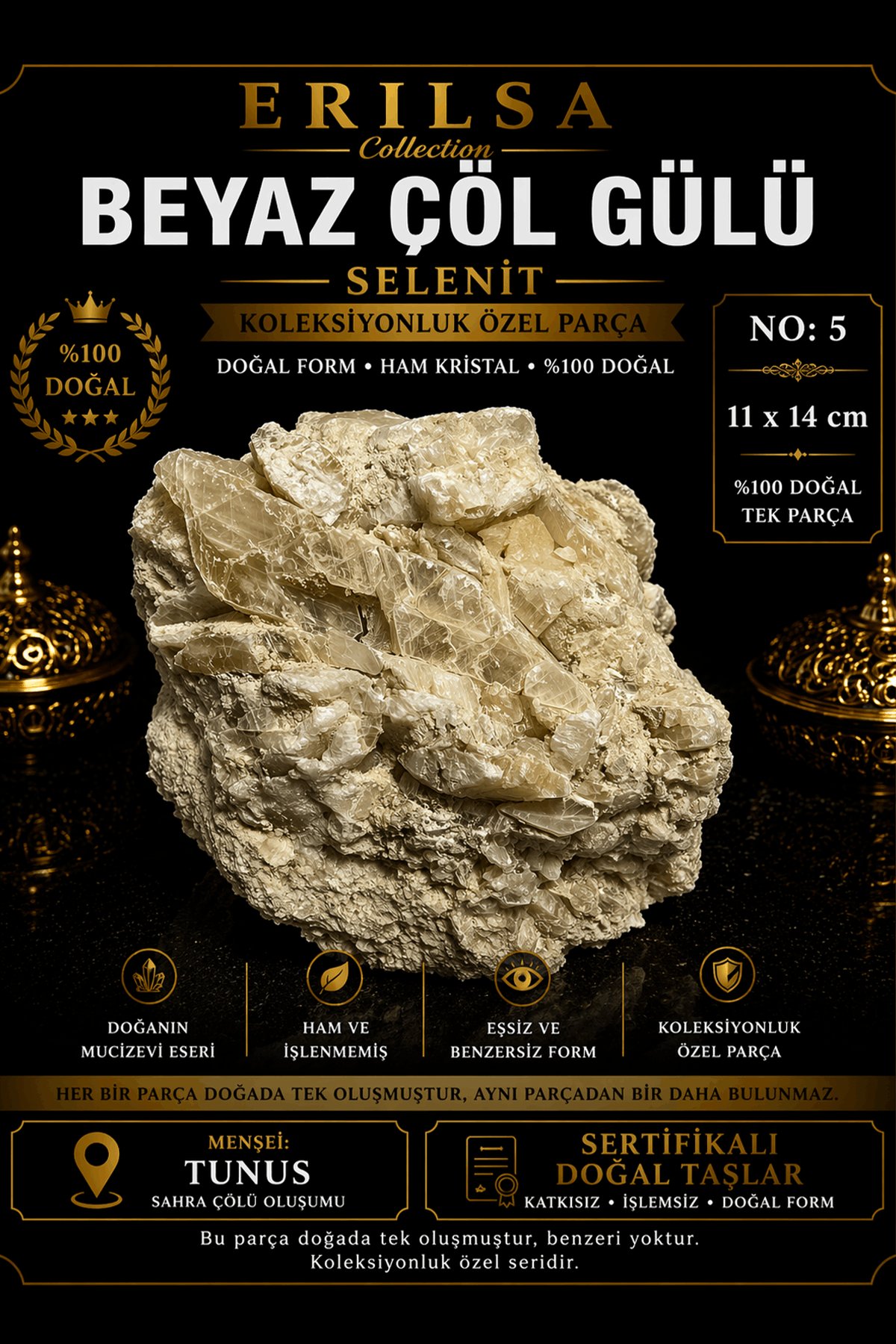 Sertifikalı Beyaz Çöl Gülü Selenit Taşı Kütle - 11x14 cm Koleksiyonluk Doğal Tek Parça