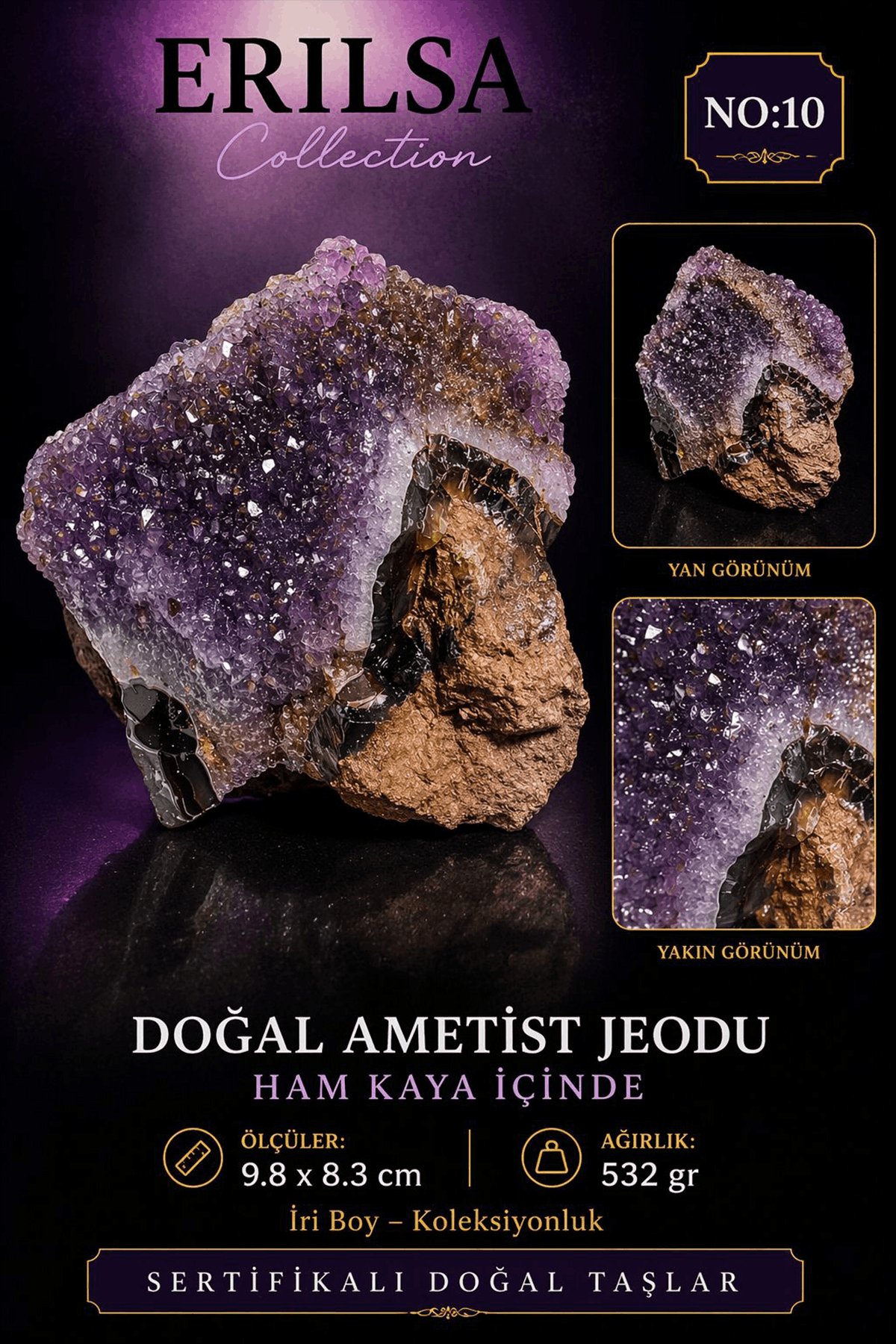 Sertifikalı Doğal Ametist Jeodu Taşı Kütle Büyük Boy Kristal Küme Ham Kaya Dekoratif Koleksiyonluk