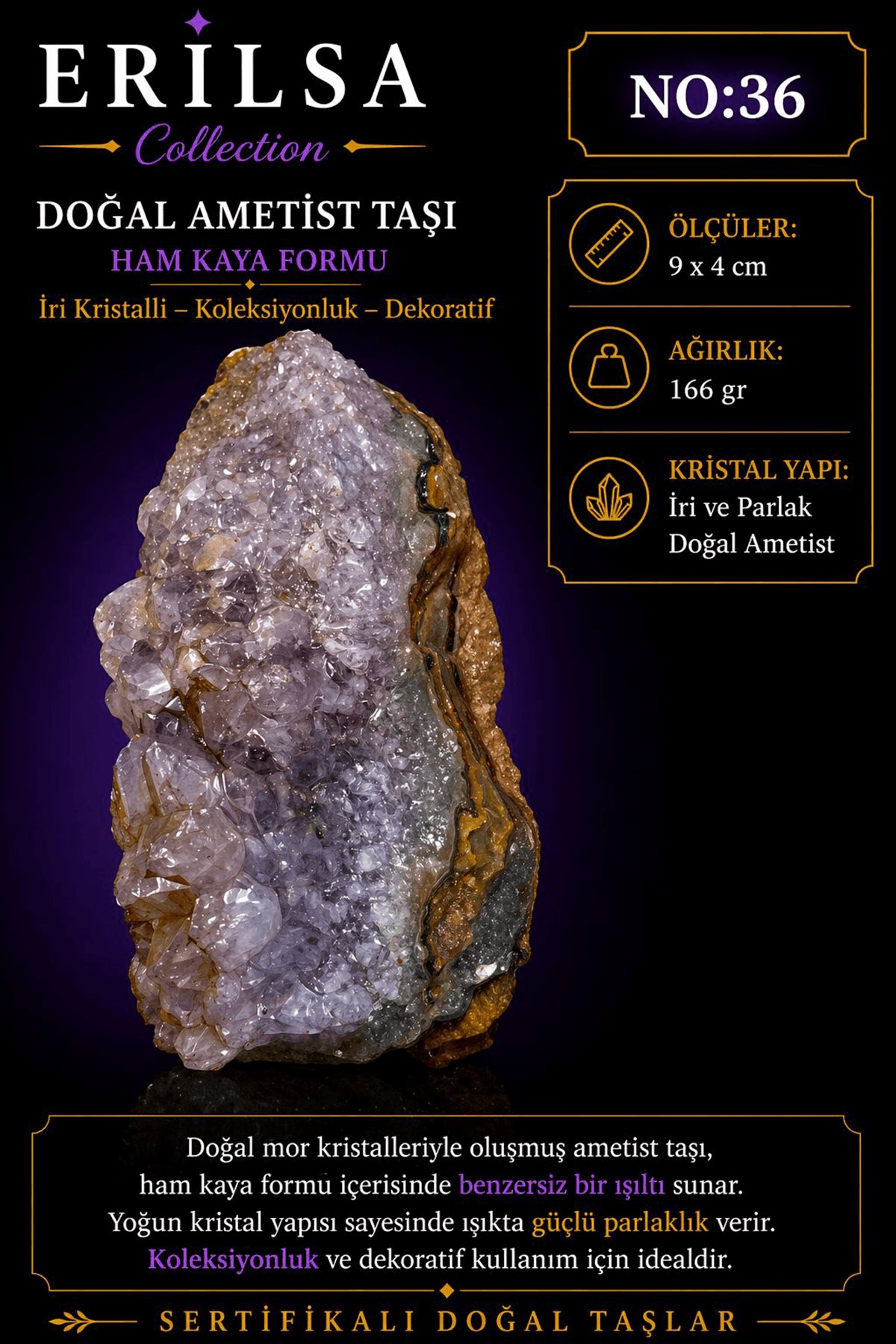 Sertifikalı Doğal Ametist Taşı Ham Kaya İri Kristalli Dekoratif Koleksiyonluk NO36