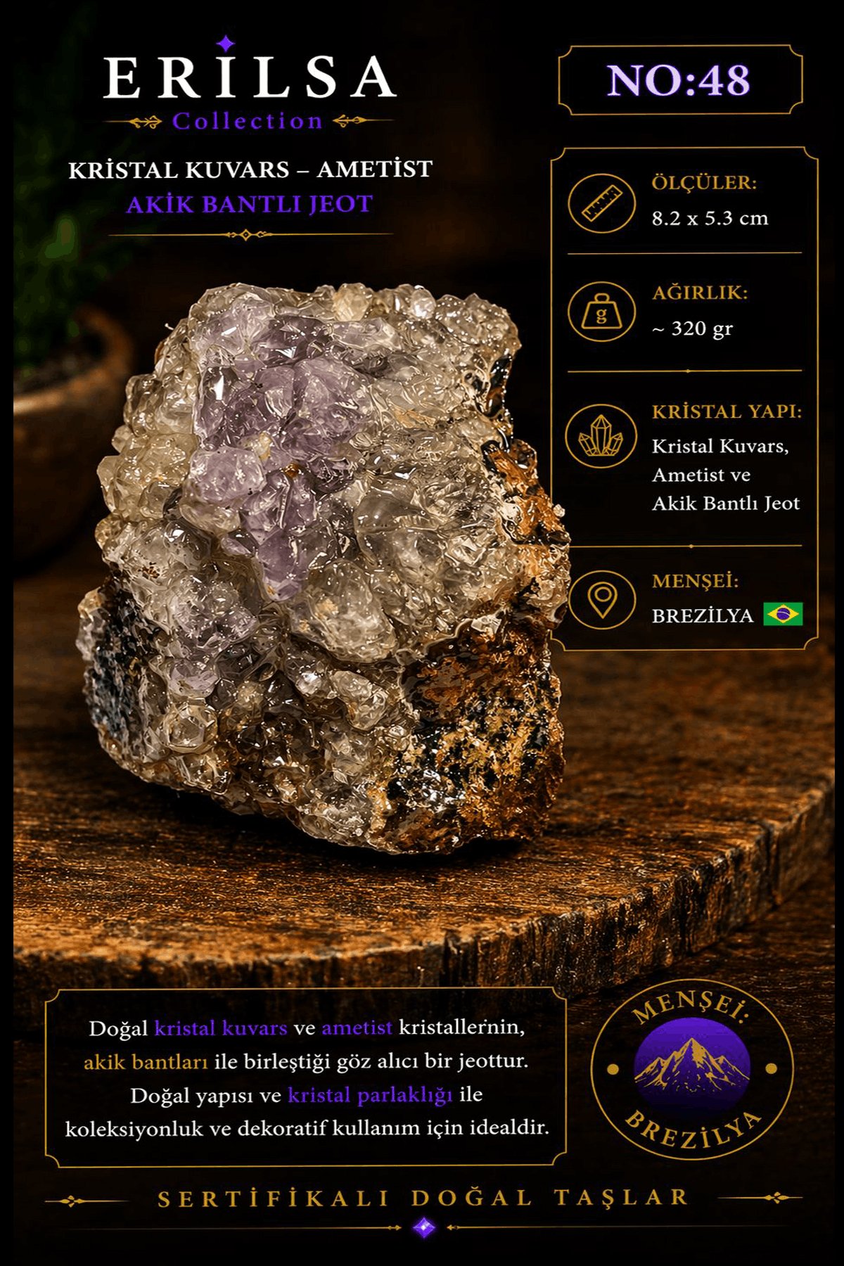 Sertifikalı Kristal Kuvars Ametist Akik Bantlı Jeot Doğal Koleksiyonluk Taş NO48
