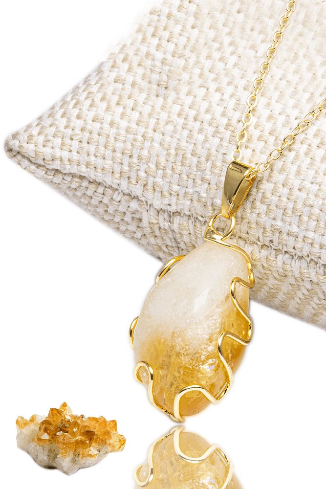 Sertifikalı 24k Altın Kaplama Doğal Sitrin Taşı Kolye