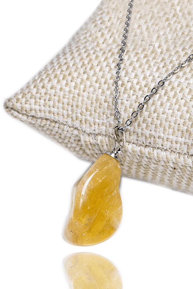 Sertifikalı Aa Kalite Ham Doğal Sitrin Taşı Kolye