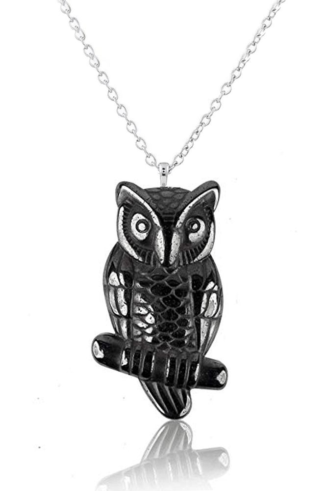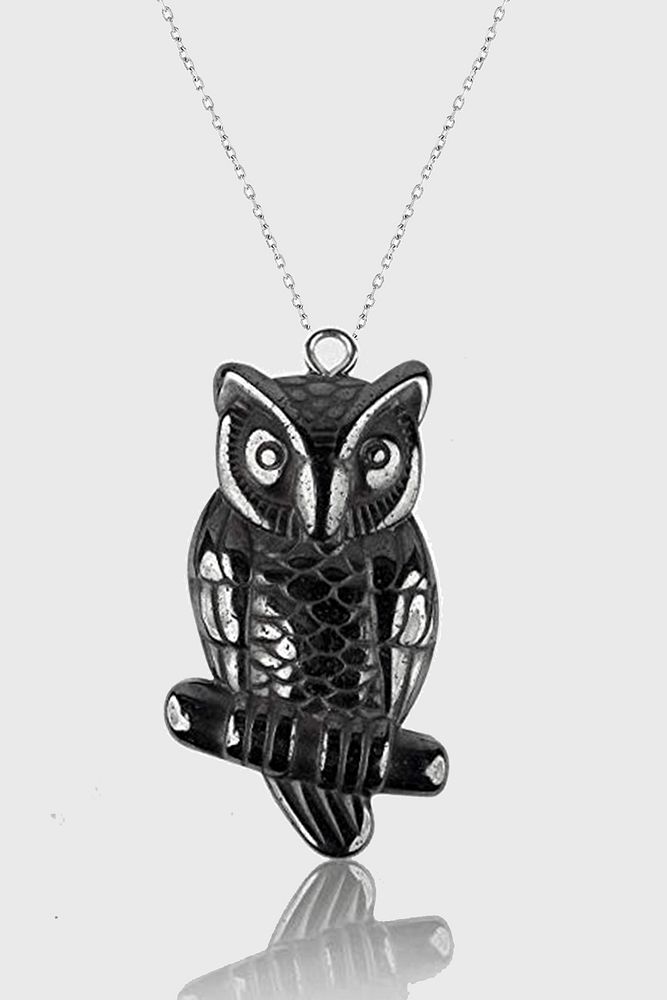 Sertifikalı AAA+ Baykuş Model Hematit Taşı Kolye