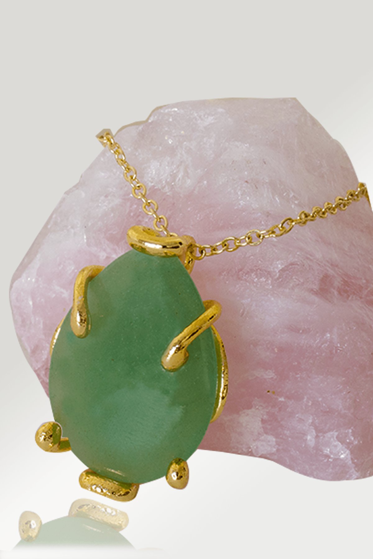 Sertifikalı AAA+ Damla Model Aventurin Taşı Kolye - Altın Renkli