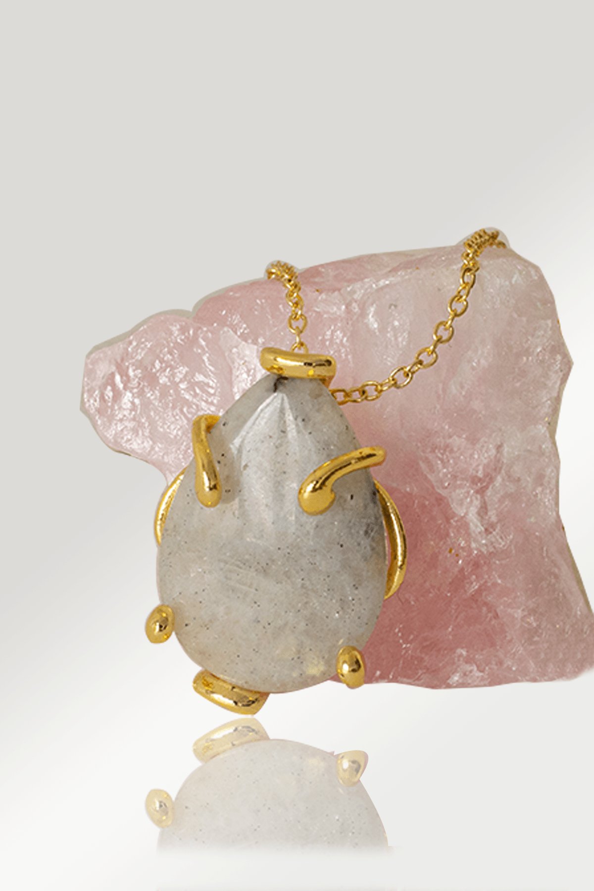 Sertifikalı AAA+ Damla Model Ay Taşı Kolye - Altın Renkli