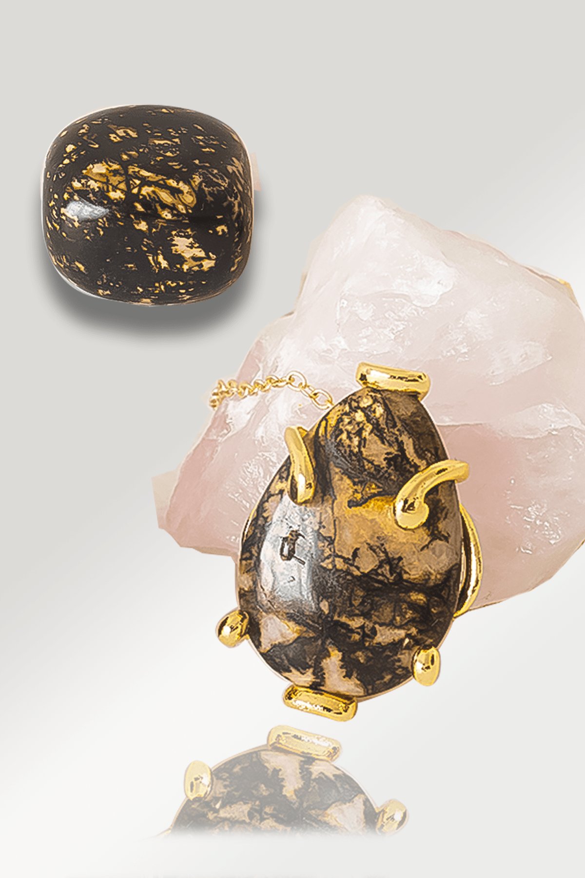 Sertifikalı AAA+ Damla Model Rodonit Taşı Kolye - Altın Renkli