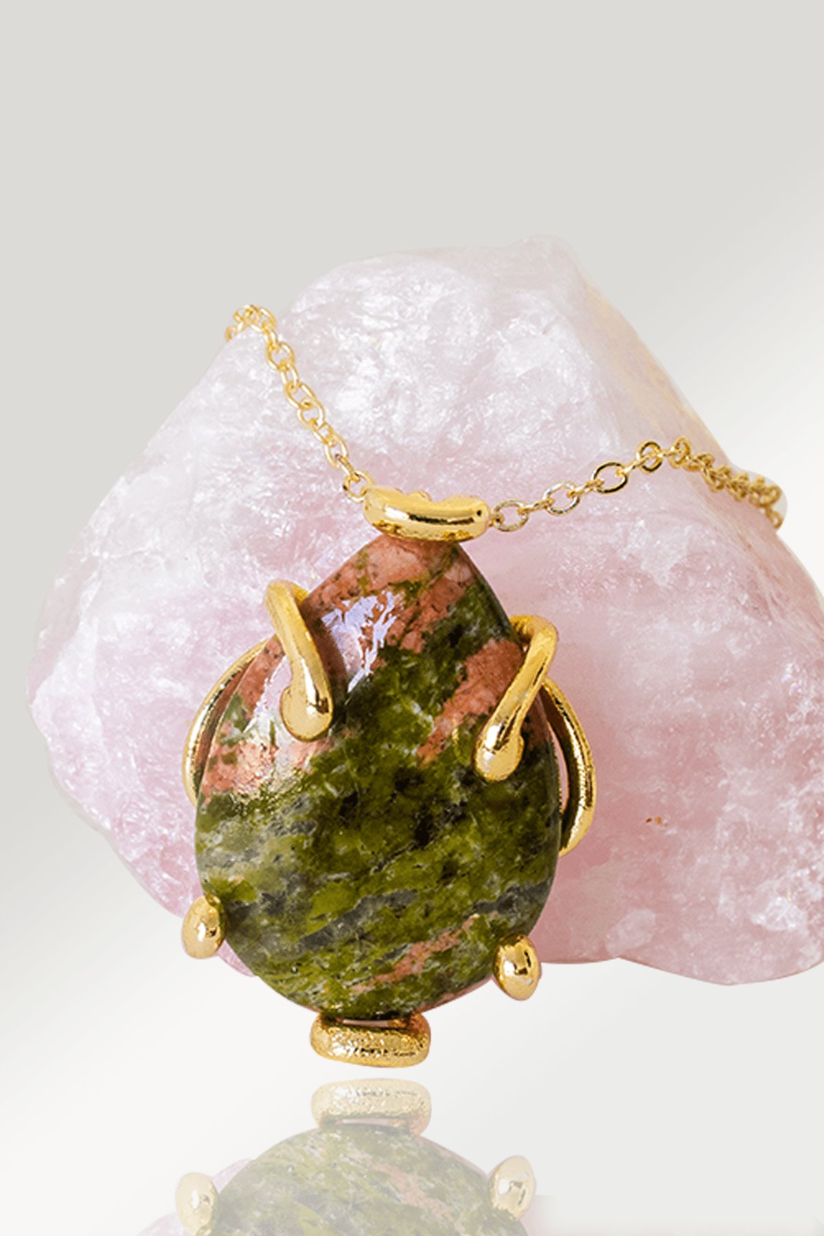 Sertifikalı AAA+ Damla Model Unakit Taşı Kolye - Altın Renkli